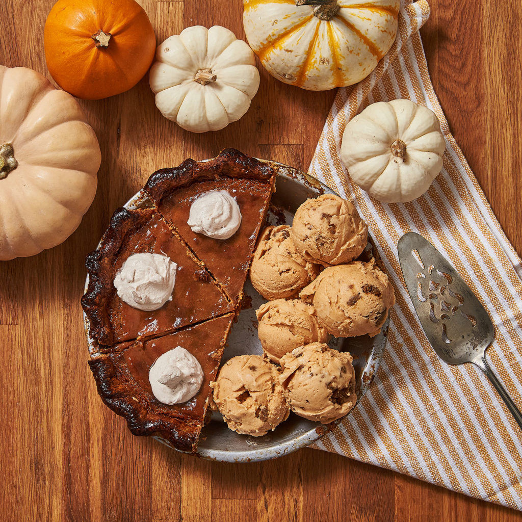 “Our secret to pumpkin spice? A heavy pinch of sea salt and allspice added to a classic blend for a warmer, more complex flavor. We spike ultra-luscious coconut cream with our special blend and Vermont maple syrup to achieve the silkiest, custardiest pumpkin pie ice cream. Bits of molasses-infused gingersnap pie crust is tossed in for a delectable crunch.”