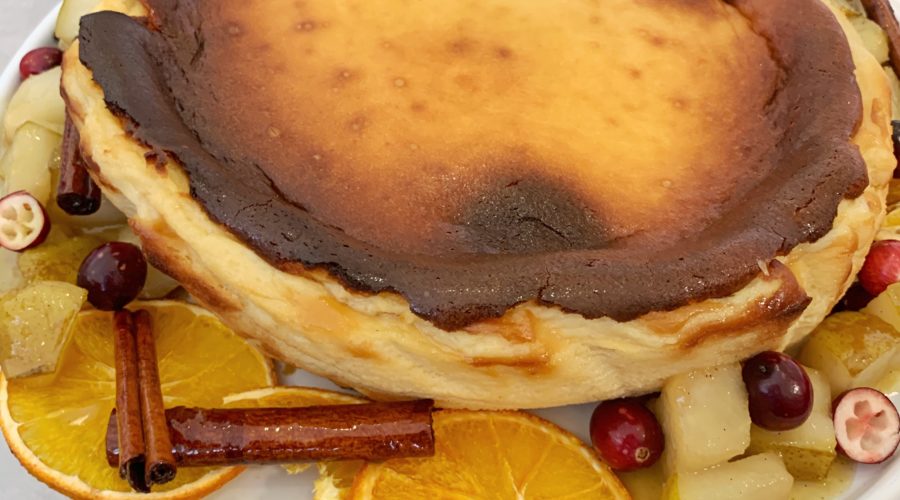 Created in San Sebastian Spain, Basque cheesecake is famous for its rustic good looks, deep sweet-savory flavor, and creamy texture. For this recipe, Gordon used Clover Sonoma, which we love for many reasons: They are American Humane Certified, BCorp Certified, and at least 5% of their profits are donated through their Clover Cares program, so you can feel really good about indulging in this dessert.