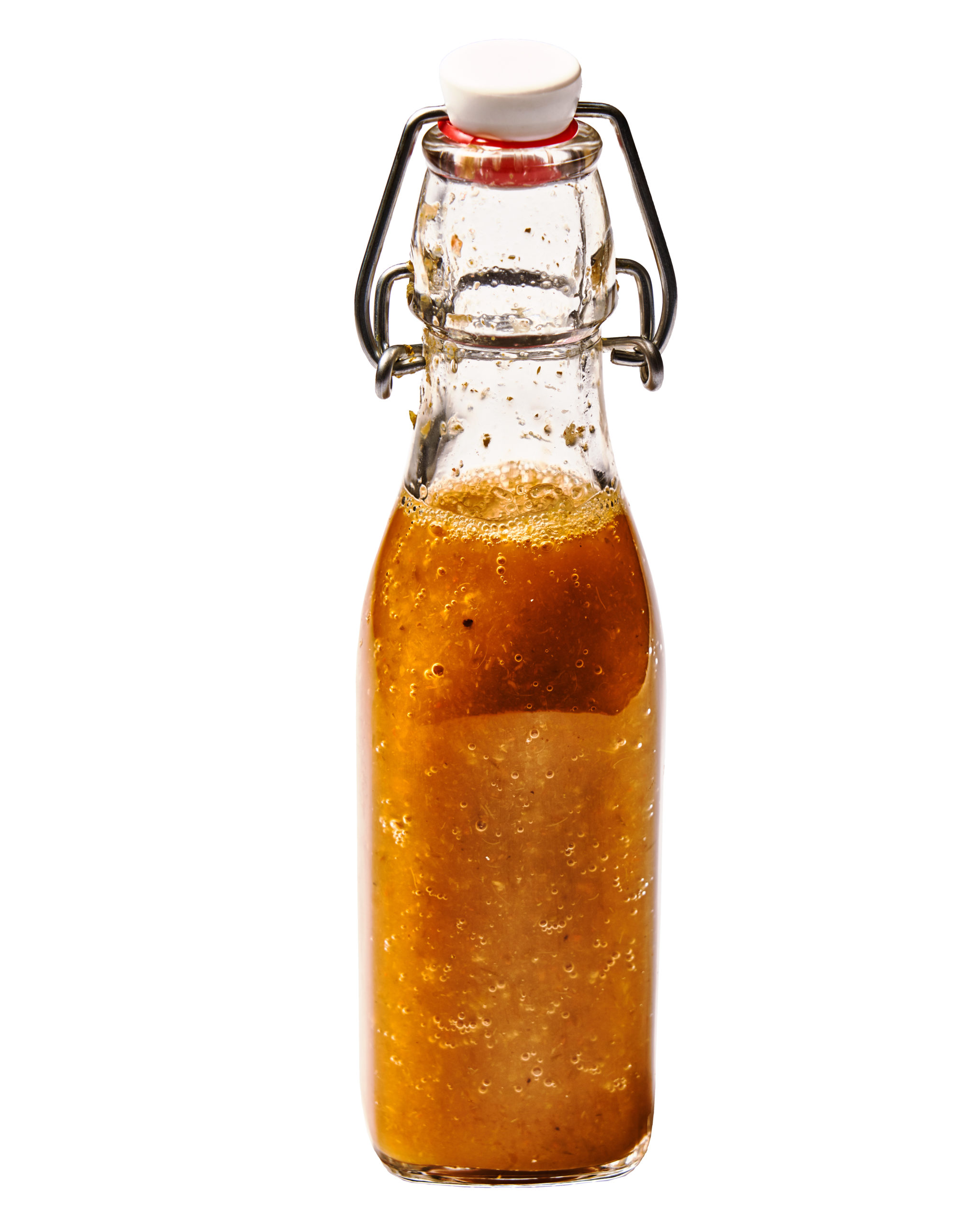 Great with everything from tacos to noodles, this hot and tangy-sweet sauce will replace your Sriracha and give your food a punchy probiotic hit. Combine 1 pound stemmed and seeded chiles such as Fresno or cherry peppers, 2 cloves garlic, smashed, 1 small red onion and 1 peeled carrot, coarsely chopped in a large glass jar or bowl. Dissolve 5 tbsp kosher salt in 2 qts water and pour over vegetable mix. Add a weight (a Ziploc filled with water works) so that they stay submerged beneath the brine. Set aside and allow to ferment for 5-7 days, depending on how warm your kitchen is (fermentation will happen faster at warmer temperatures). After 5-7 days, scoop out the vegetables (reserve the brine), add 2 teaspoons sugar and 1/3 cup apple cider vinegar, and blend to a smooth puree, adding a splash of brine as needed to thin the hot sauce to a sauce consistency. Adjust seasoning according to your taste, then pour the sauce into bottles and keep refrigerated. Best if used within six months; heat will mellow with age.