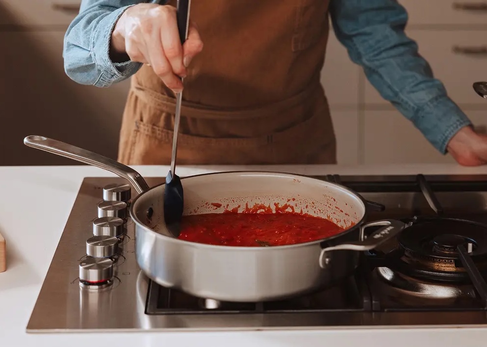 The new CeramiClad line is made in Italy of premium 5-ply construction and is oven-safe up to 550°F, meaning you can finish dishes safely as long as you’re not broiling at a high heat. It’s compatible with gas, electric, and induction cooktops—the latter of which we’ll start seeing a lot more of here in California as gas stoves are phased out.
