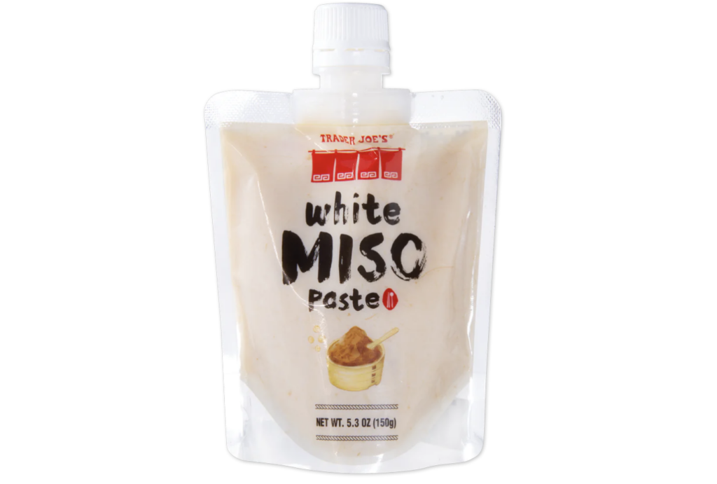TJ’s says it best: “White Miso adds depth to soups, sauces, and dressings. You can use it in marinades for meats, fish, and tofu, or as a dip for crudité. Because of its short ferment, it adds balance and pleasant dimension to baked goods, without making them too salty or savory. Miso chocolate chip cookies, anyone?”