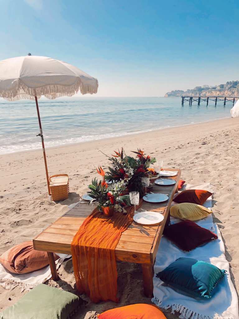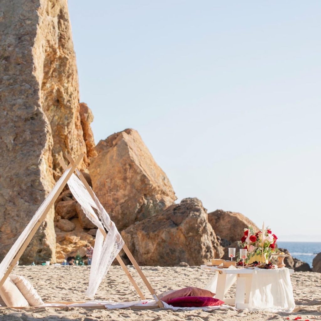 Beach picnics are a popular offering—think fringe-lined umbrellas and blankets with pillows in sunset shades—but Rivard also curates backyard movie nights, summer Duffy boat rides, chef-led meals at private residences (or sushi on the sand), and more. She aims to create chic, light, and airy tablescapes. Clients can choose from 10 different pre-curated styles or work with designers to come up with their own for proposals, weddings, and more.