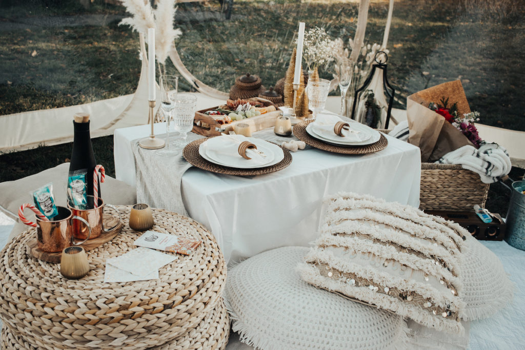 In Denver, sisters-in-law Sofia and Kassi Beer combat Colorado’s elements by renting a brick-and-mortar venue where clients can choose from picnic or regular seating, or a combination of both, in a bohemian-inspired setting with lots of low-hanging lights and rugs.