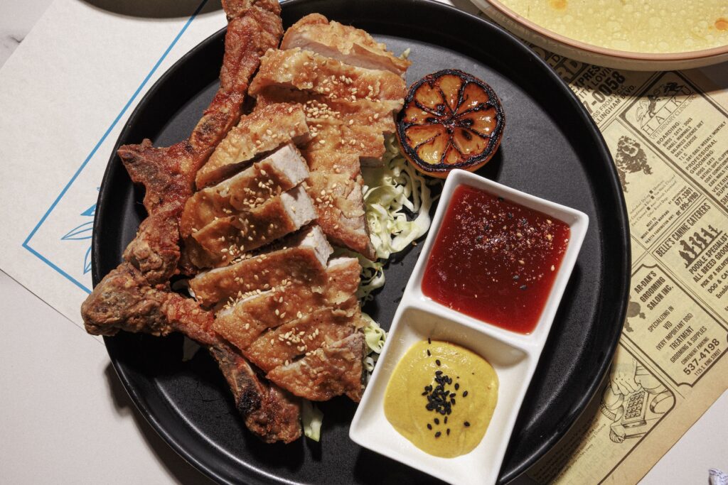 Side Street Inn‘s iconic pan-fried pork chop plate epitomizes the indulgent comfort food locals love. “It’s like six bone-in pork chops, fried and seasoned,” Dodson describes. At 855, the golden brown chop gets an upgrade but maintains its soul—served with pineapple sweet and sour and Chinese hot mustard on a bed of cabbage. “It’s very indulgent and comforting. Pork chops are a more humble and homey ingredient, but they’re classic for a reason.”