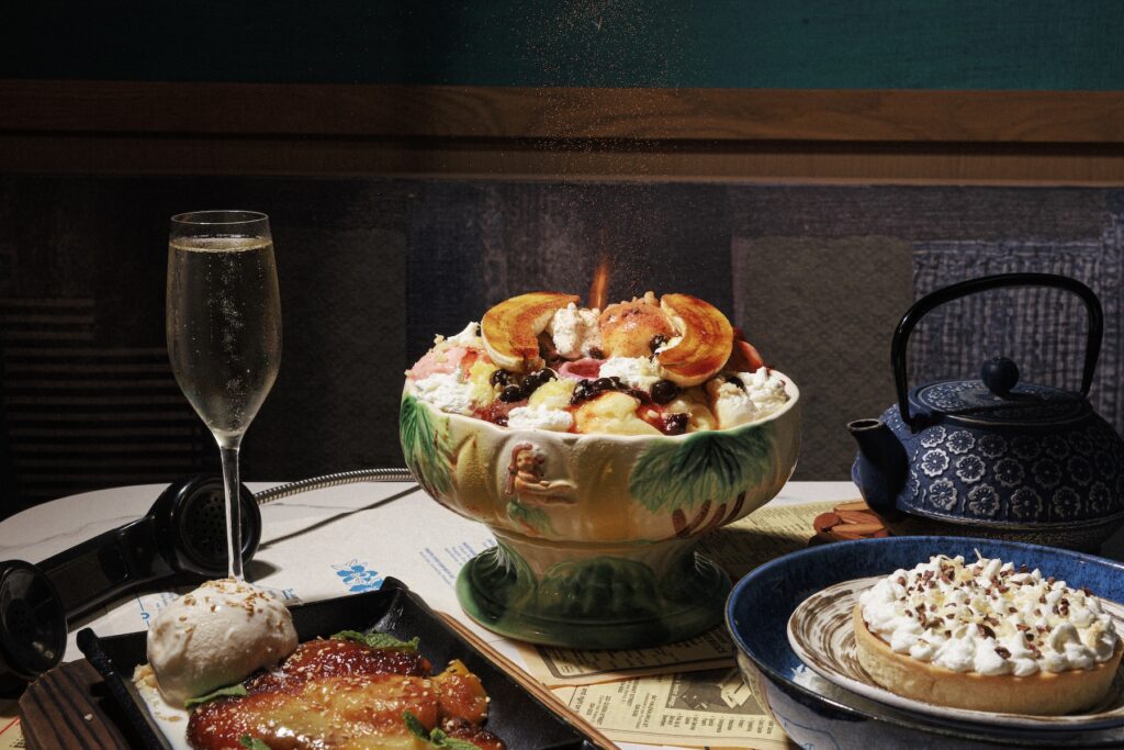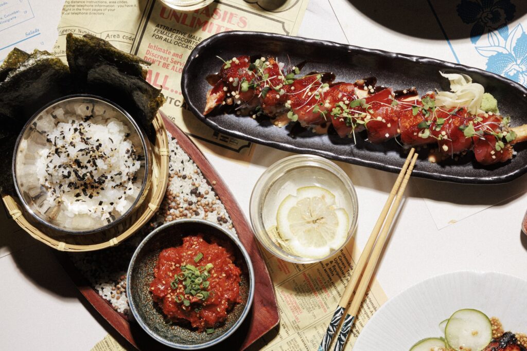 Any Place Lounge represents the heart of what made vintage Waikīkī dining special—genuine hospitality that spans generations. “Every time I go in there with my family, the matriarch of the establishment comes in and greets my daughter. She’ll get something from her toy chest and bring it out to her. And they already know our order and immediately put the bass in,” Dodson recalls. The selection of pupus (think small, shareable appetizers or finger foods served at communal gatherings and parties) at Any Place includes items like Spam and egg sandos and dried ika or cuttlefish, which is popular in Chinese, Japanese, and traditional Hawaiian cuisine. Similarly at 855, Dodson starts the menu with a gaggle of pupus like garlic shrimp, gau gee, and poke hand rolls.