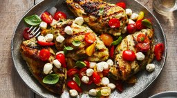 You’ll love the classic Italian flavors of this grilled chicken, and the caprese salsa with sweet, tart grape and cherry tomatoes is the perfect accompaniment to the charred flavor from the grill.