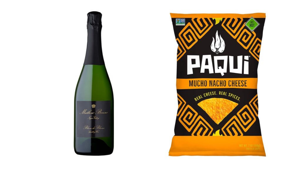 I’m a firm believer that Champagne and sparkling wine are some of the most versatile wines when it comes to pairing with food. The same goes for chips, it seems, as Bruno has several suggestions to match up with his blanc de blancs sparkling wine. “The wine’s robust profile enhances the cheesy goodness of these chips, making it a delightful duo for any occasion.” He also suggests Kettle Brand Sea Salt and Vinegar Kettle Potato Chips as an alternative. “The crisp acidity of the wine beautifully balances the tangy zing of these chips.” Barbara’s Original Cheese Puffs would be another awesome pairing, according to Bruno. “The wine’s effervescence enhances the creamy cheese flavor, making it an exquisite pairing.”