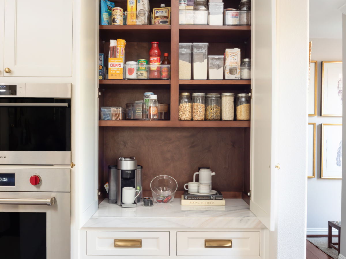 In a well-designed kitchen with its own surprise nooks, a coffee maker vanishes into a pantry.