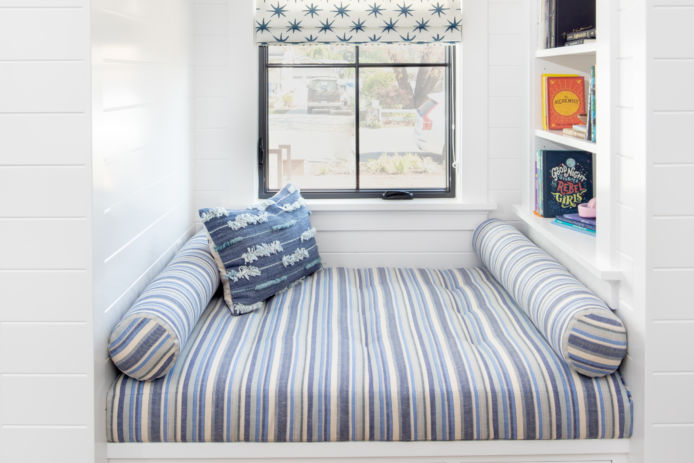 Saunders: My advice is to think creatively when finding a fun space in your home for a reading nook. I would recommend considering underutilized closet spaces, especially under the stairs, as typically these are areas that tend to collect clutter and are not all that usable. This reading nook is integrated into the living space and super useful for storage. We love to design useful and pretty spaces.