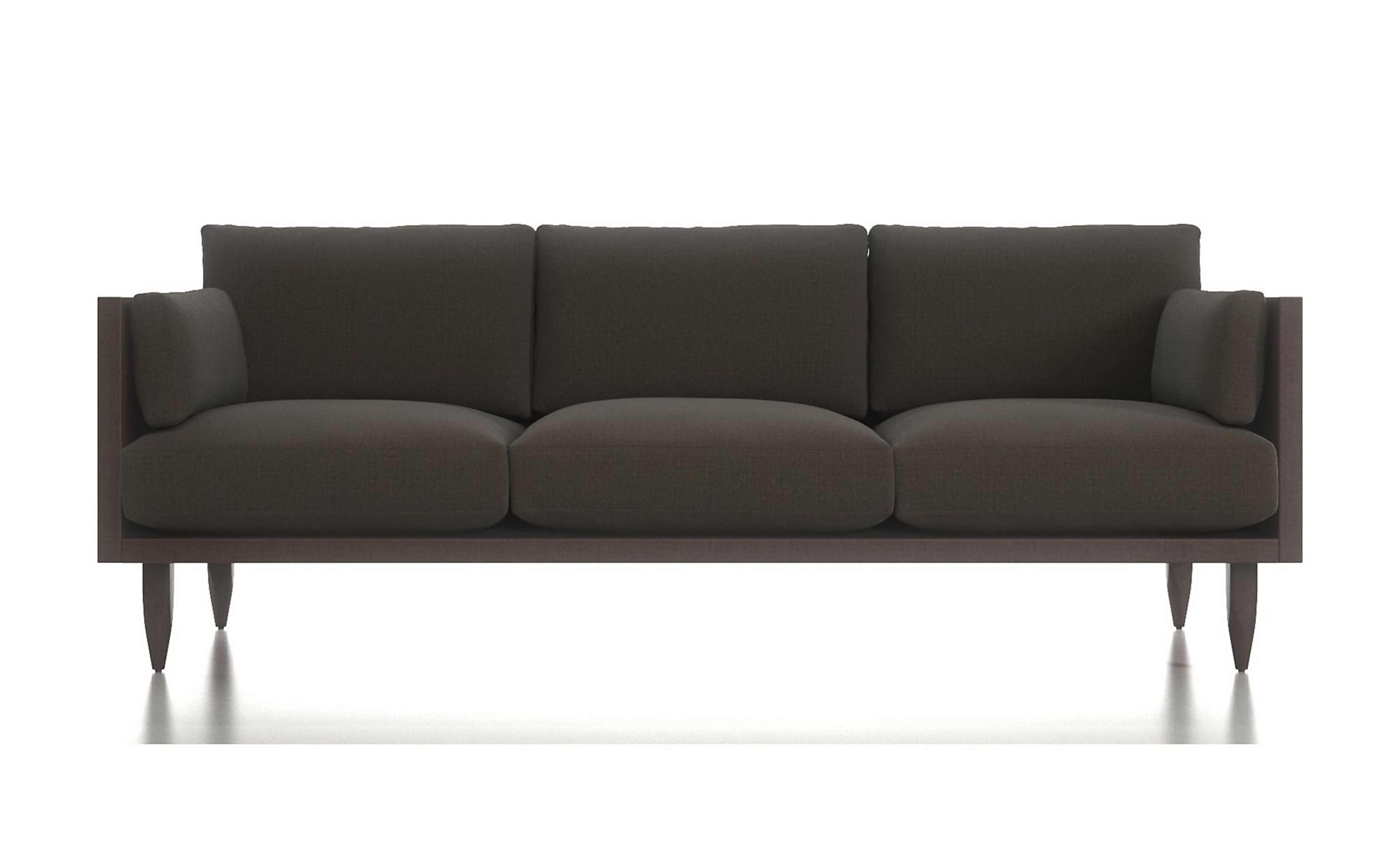 Crate & Barrel’s wood frame sofa is crafted from certified sustainable engineered hardwood and solid maple arms. It’s topped with a pair of bolster throw pillows in a down blend.