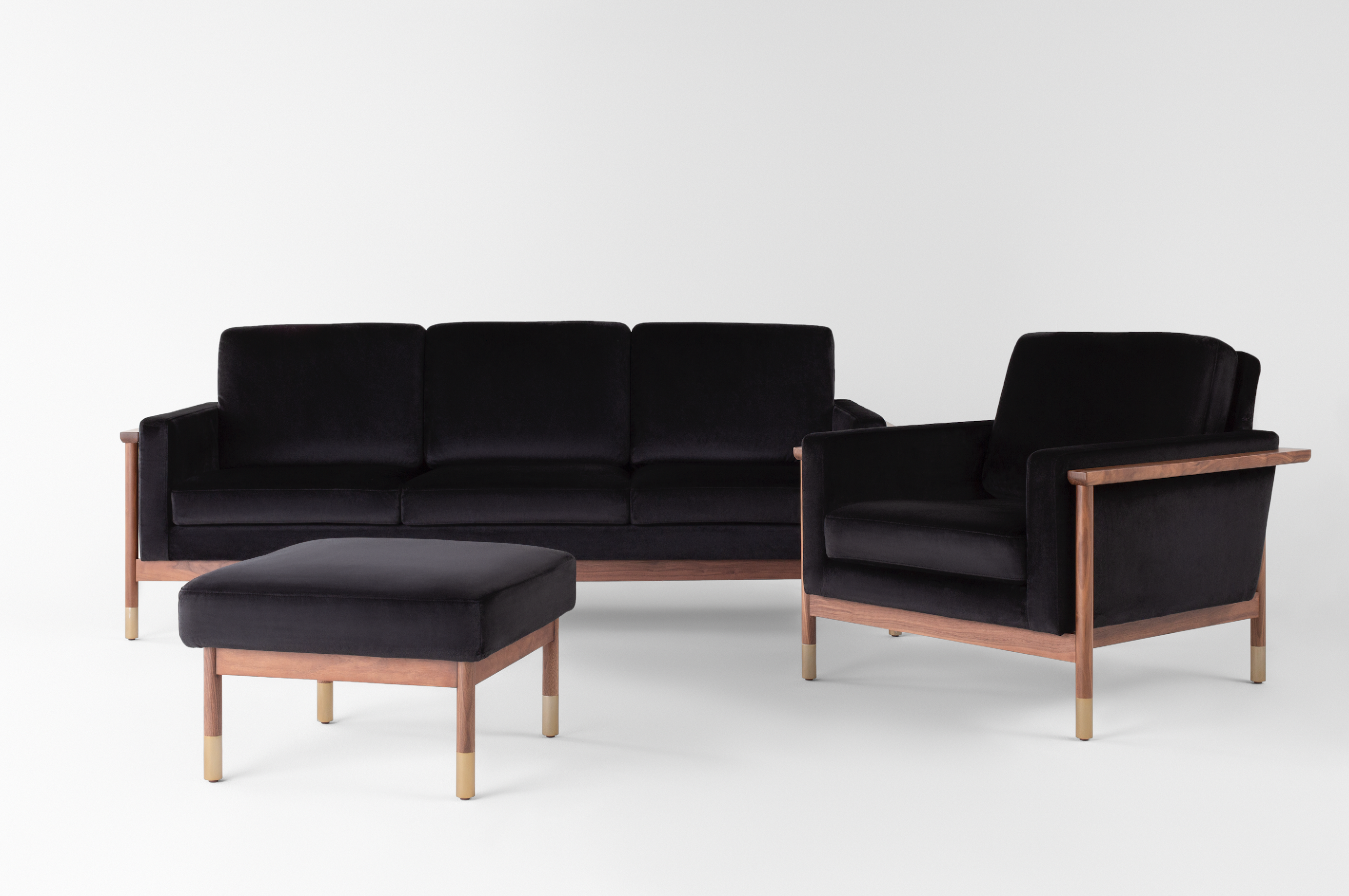 Fashion designer Jason Wu recently launched a new exposed frame furniture collaboration with Interior Define. The modern wood frame leather and fabric pieces are available in a sofa, chair, sectional, and ottoman. Choose more than 50 fabric options, including dozens of kid- and pet-friendly varieties as well as either a matte black or walnut frame. Each features sleek brass-capped legs.
