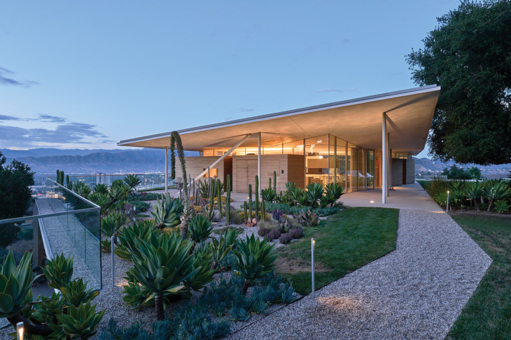 When you see how the house is sited, on a promontory high above Los Angeles, it’s obvious that it was worth the negotiating hassle. The epic views of the San Fernando Valley, San Gabriel, and Santa Monica Mountains and the seamless landscape design by Doug Hoerr, principal of the Chicago-based landscape architecture firm Hoerr Schaudt, position the property to join the ranks of the city’s iconic houses.
