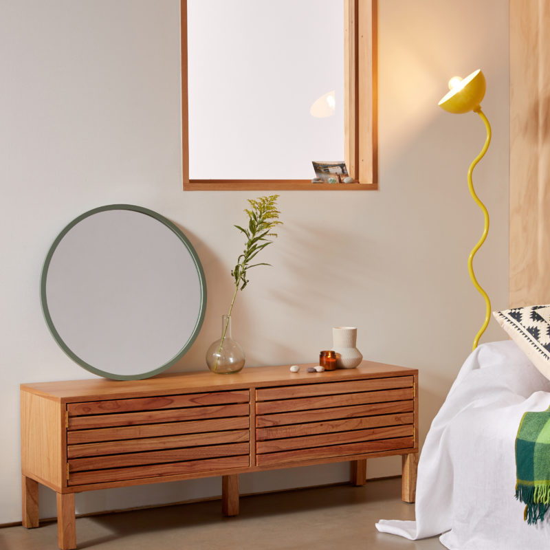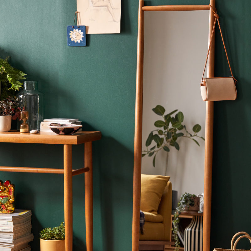 This mid-century-inspired mirror’s style would blend well in just about any home. $199