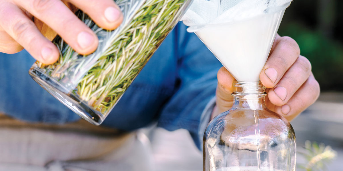 Filter the infused vinegar by pouring it through a fine-mesh strainer or cheesecloth draped over a funnel into a clean glass jar. Store in a cool, dark place; the cleaner will keep for up to 1 year.