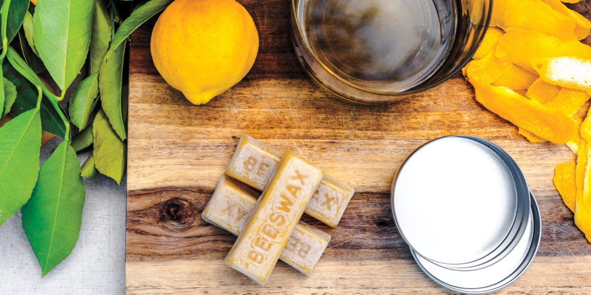 Protect wood surfaces with this polish made from lemons, beeswax, and olive oil.