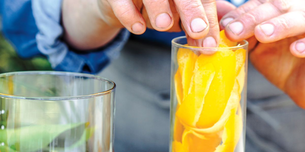 Wash lemons thoroughly and let dry completely. Using a sharp knife or peeler, cut thin slivers of peel into long ribbons. Be sure to avoid the white pith as much as possible.