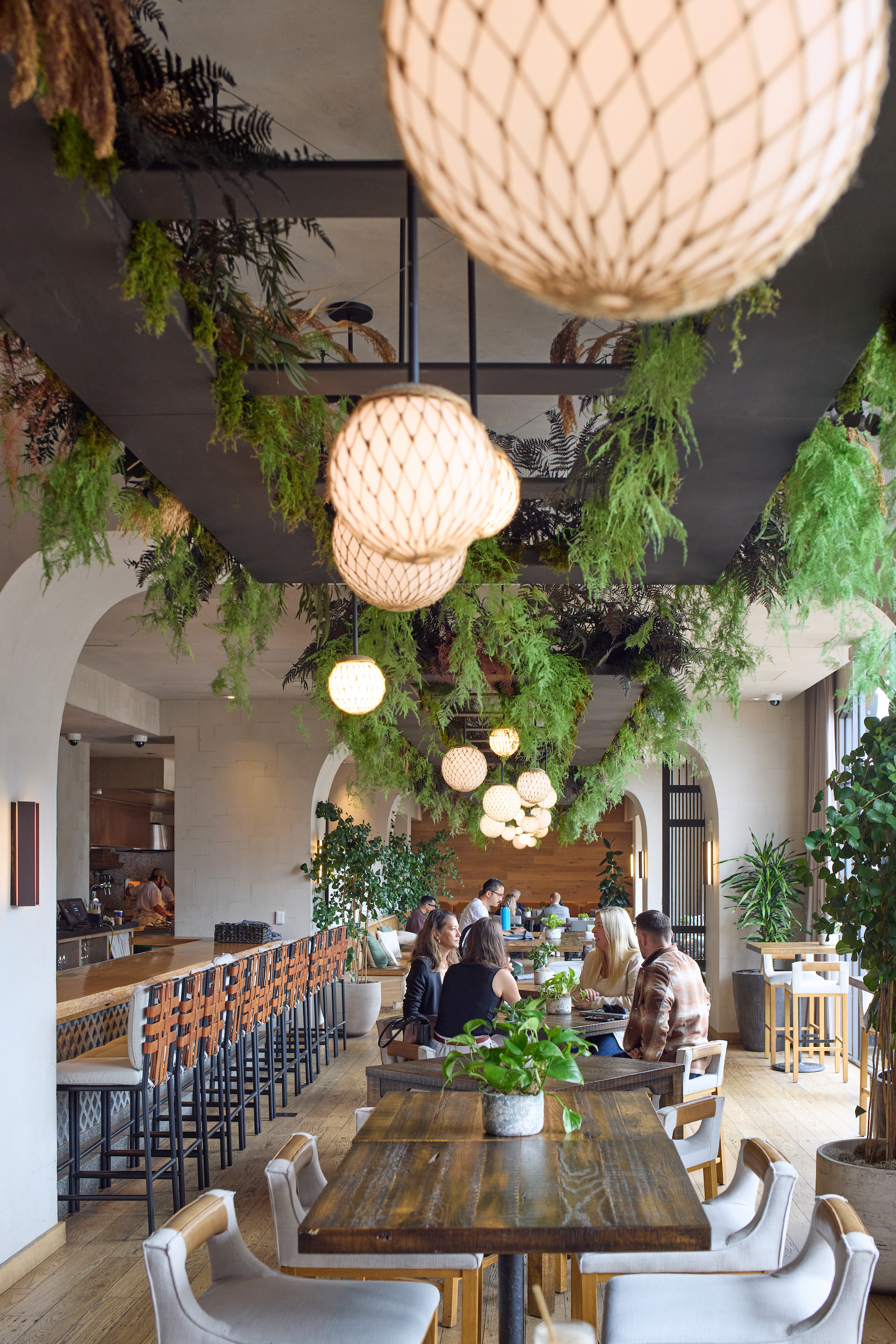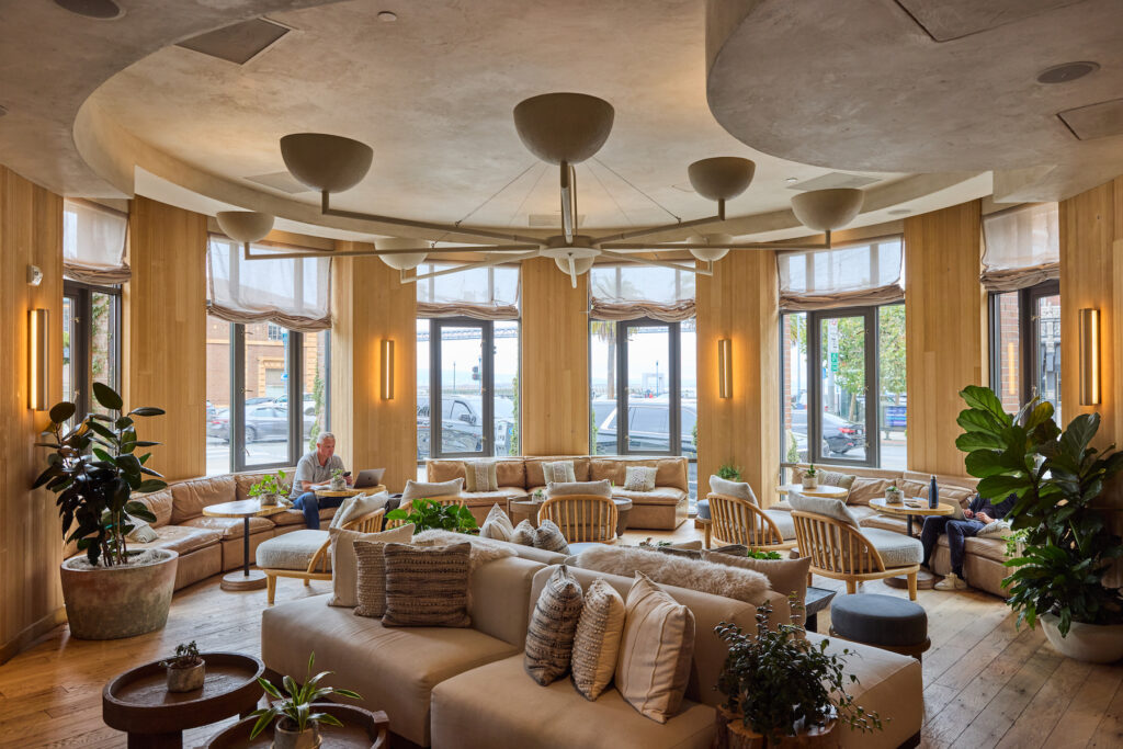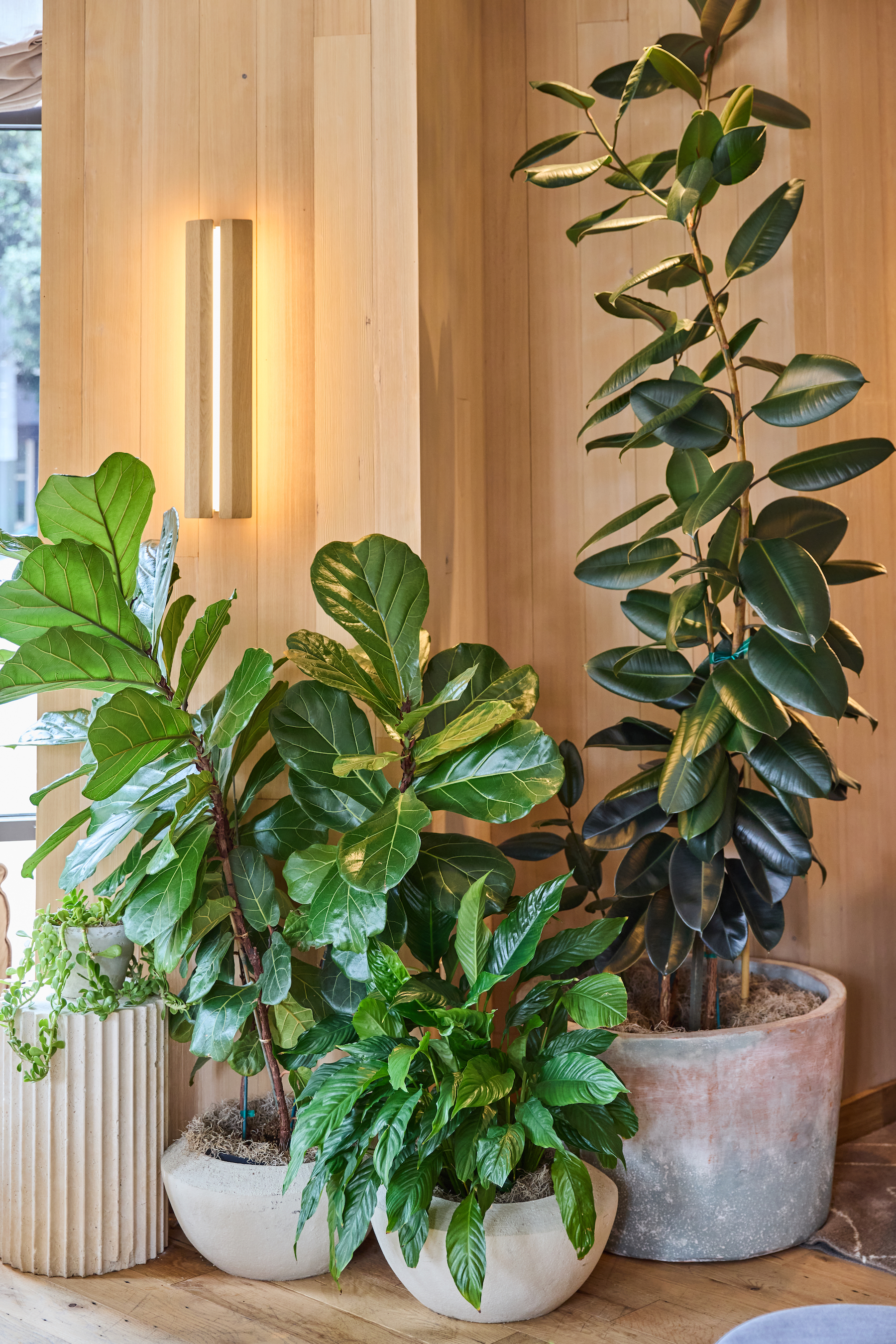 Throughout the various workspaces and restaurants at the hotel, you’ll find mixing and matching of plant species and vessels to create variety and dimension. Want some inspo on creating plants that cohabitate well in planters together? Check out Lana Williams’s gorgeous step-by-step plant recipes for creating lush outdoor planters here.