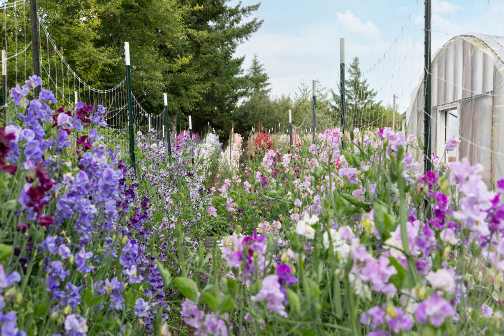 Sweet peas thrive in 50 to 55°F soil temperatures and can handle frost without issue. “When sweet peas are fall-sown and ‘grown cold,’ plants are very tough and can handle a freeze,” says Marryn. However, if your winter temperatures regularly dip below 20°F, consider planting in a hoophouse or greenhouse for protection. For those planting directly outdoors, a simple frost cloth can safeguard against unexpected cold snaps.