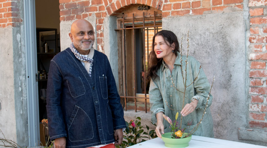 Designer Rozae Nichols, who has created a line of beautifully made garden accessories and apparel called Flora Animalia, enlisted Ravi GuneWardena, a partner at the architecture firm Escher GuneWardena and a long-time student of Ikebana. GuneWardena shared steps to creating a simple arrangement at a workshop held at the garden behind Nichols’ Los Angeles design studio.