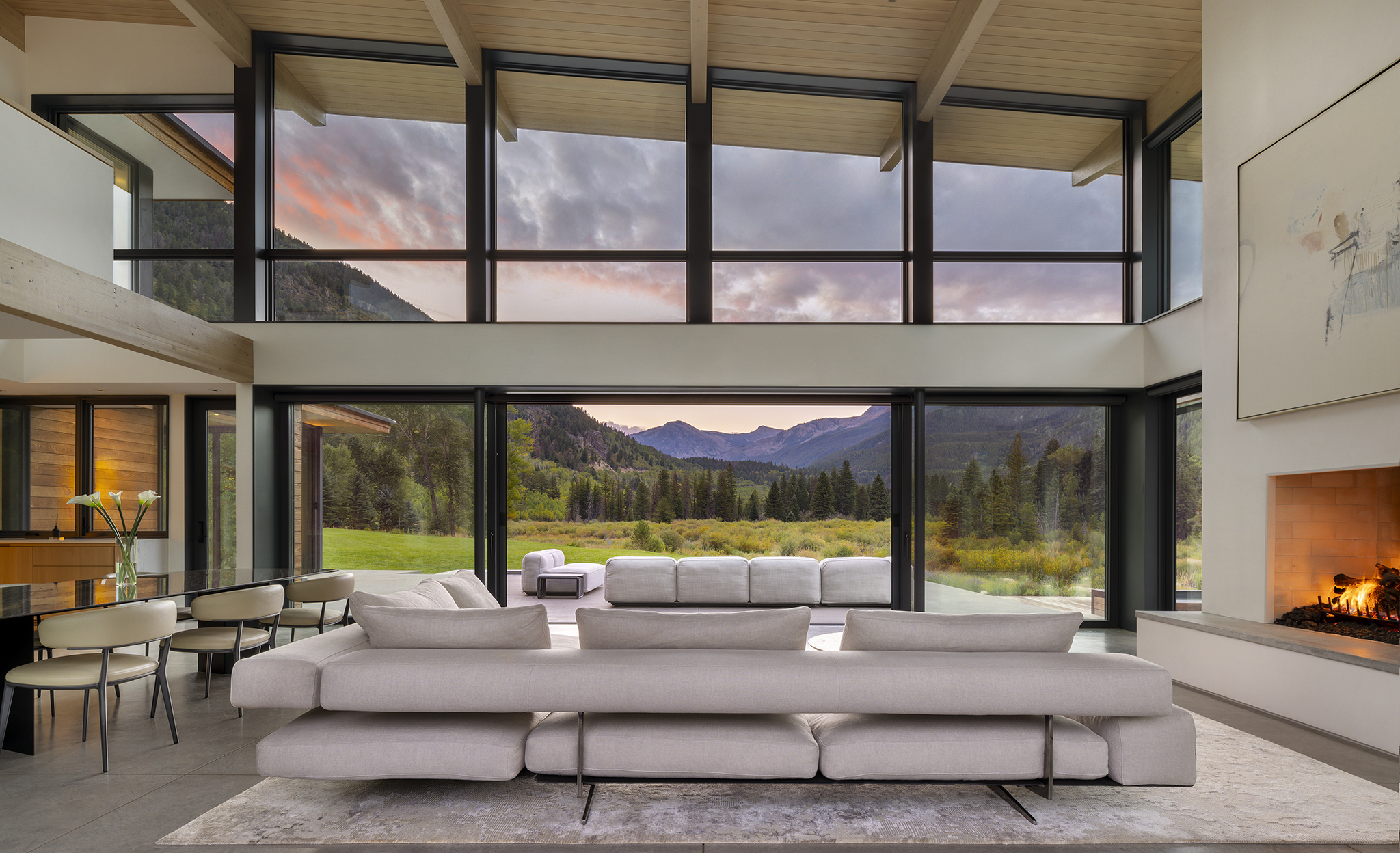 Every room at Turkel Design’s Thunder Road Reaches in Jackson Hole frames stunning mountain views.