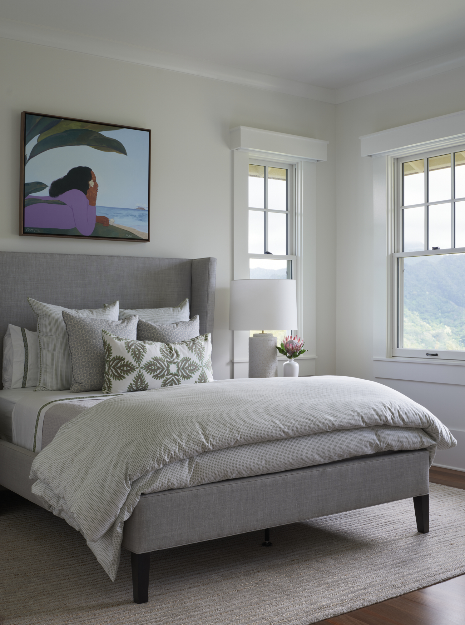 The Averylily Home Collection launched in early 2024 with high-quality bedding, bath, and decor that celebrates the beauty of Hawaiʻi, paired with a color palette that reflects the elements – basalt, palm, sand, and sky. Honolulu-based artist Andrew Mau designed the iconic surfer print featured on their hand blockprinted quilts and textiles, highlighting their dedication to local artists.