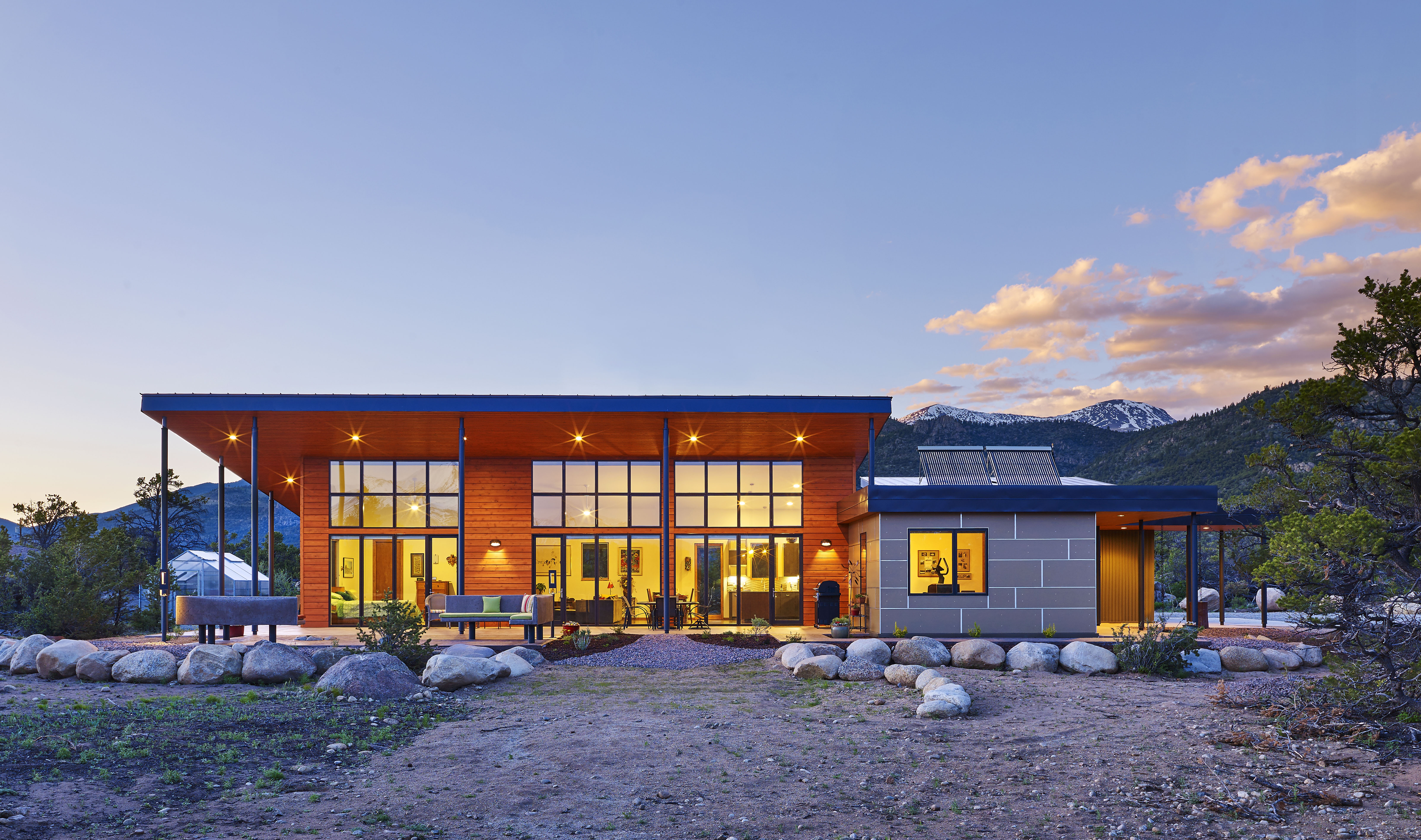 This Buena Vista, Colorado project combines a classic L+S approach of simple forms, straightforward construction techniques, and low tech sustainability. The overhangs are right sized for taking in views and passive solar shading.