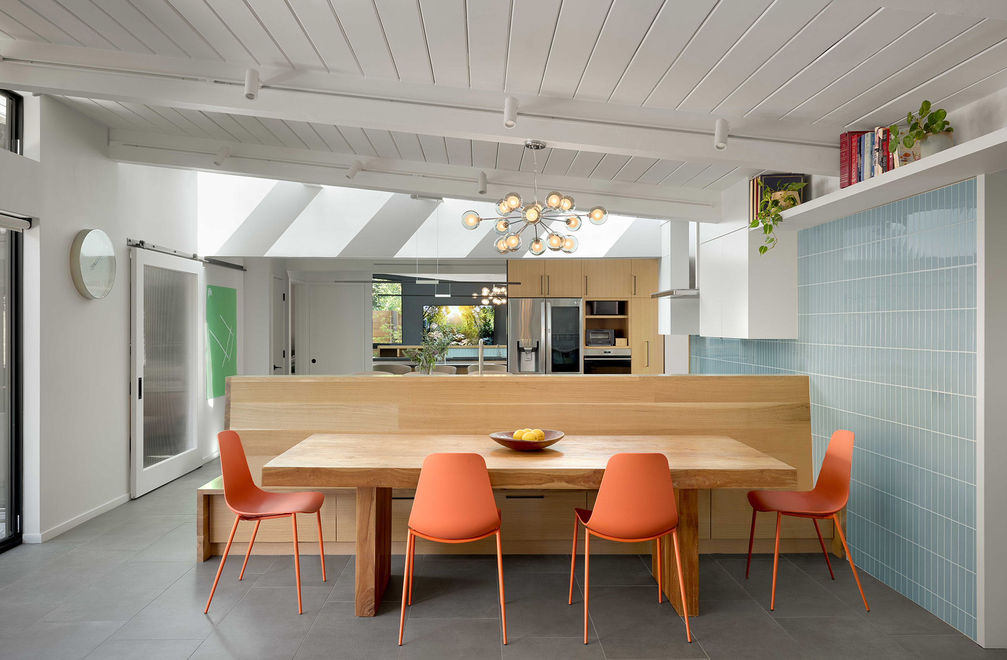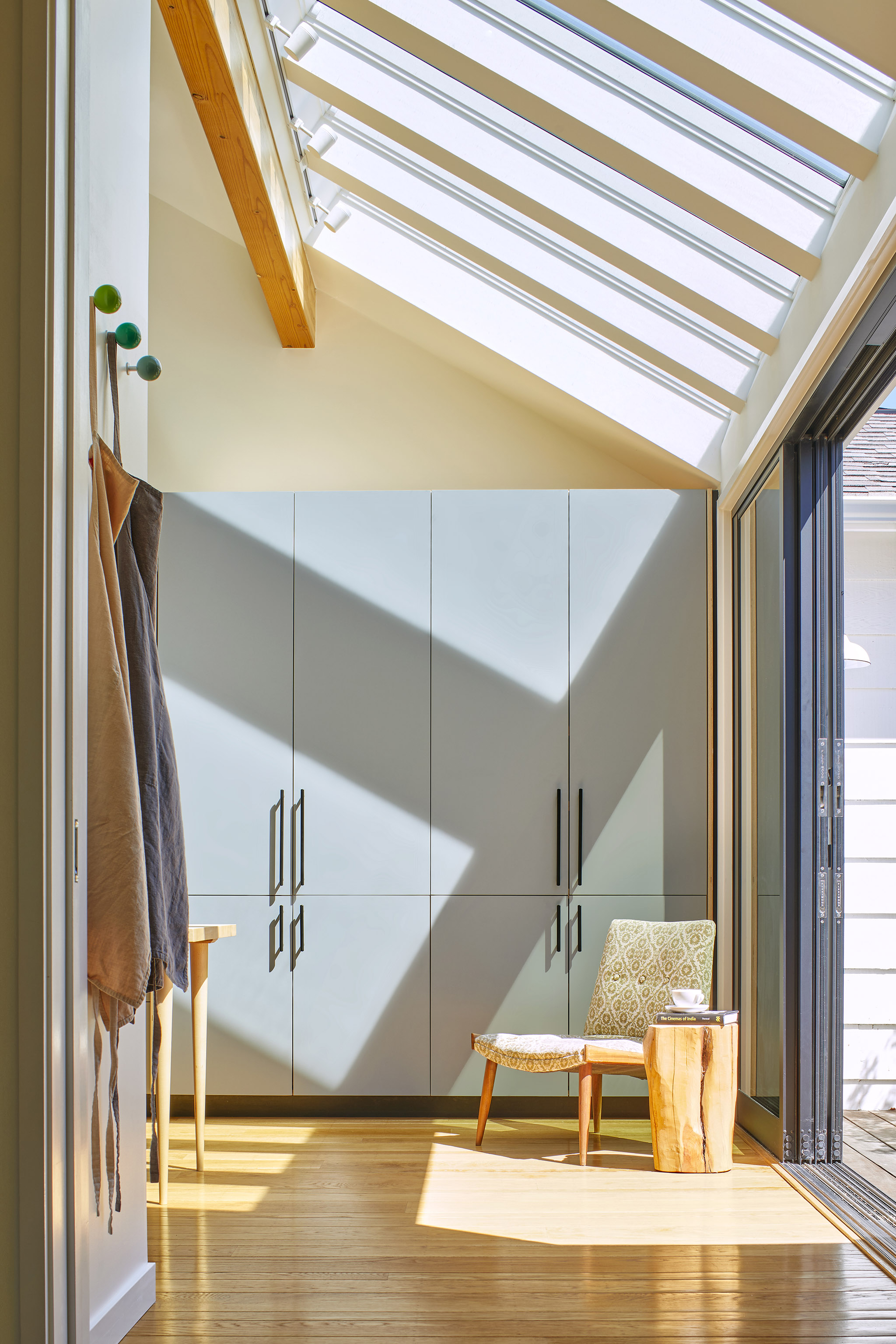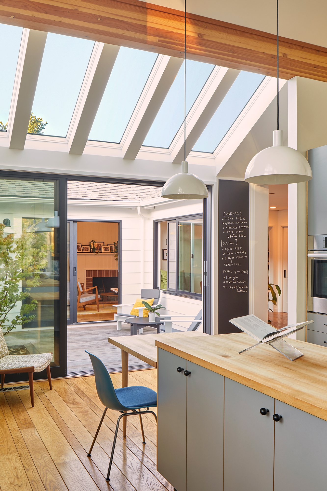 To preserve the home’s midcentury character, original tongue-and-groove ceiling and wood beams were revealed and restored.