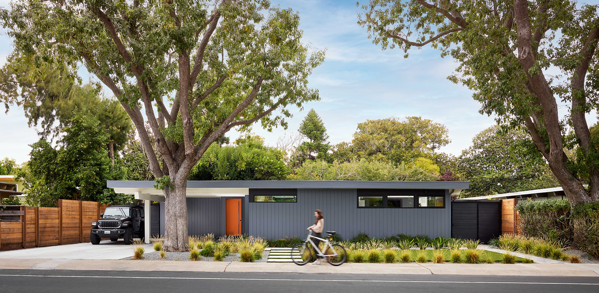 This home’s garden was envisioned as a central organizing element, with wide, low-slung decks (inspired by the Japanese “engawa,” or elevated walkway)