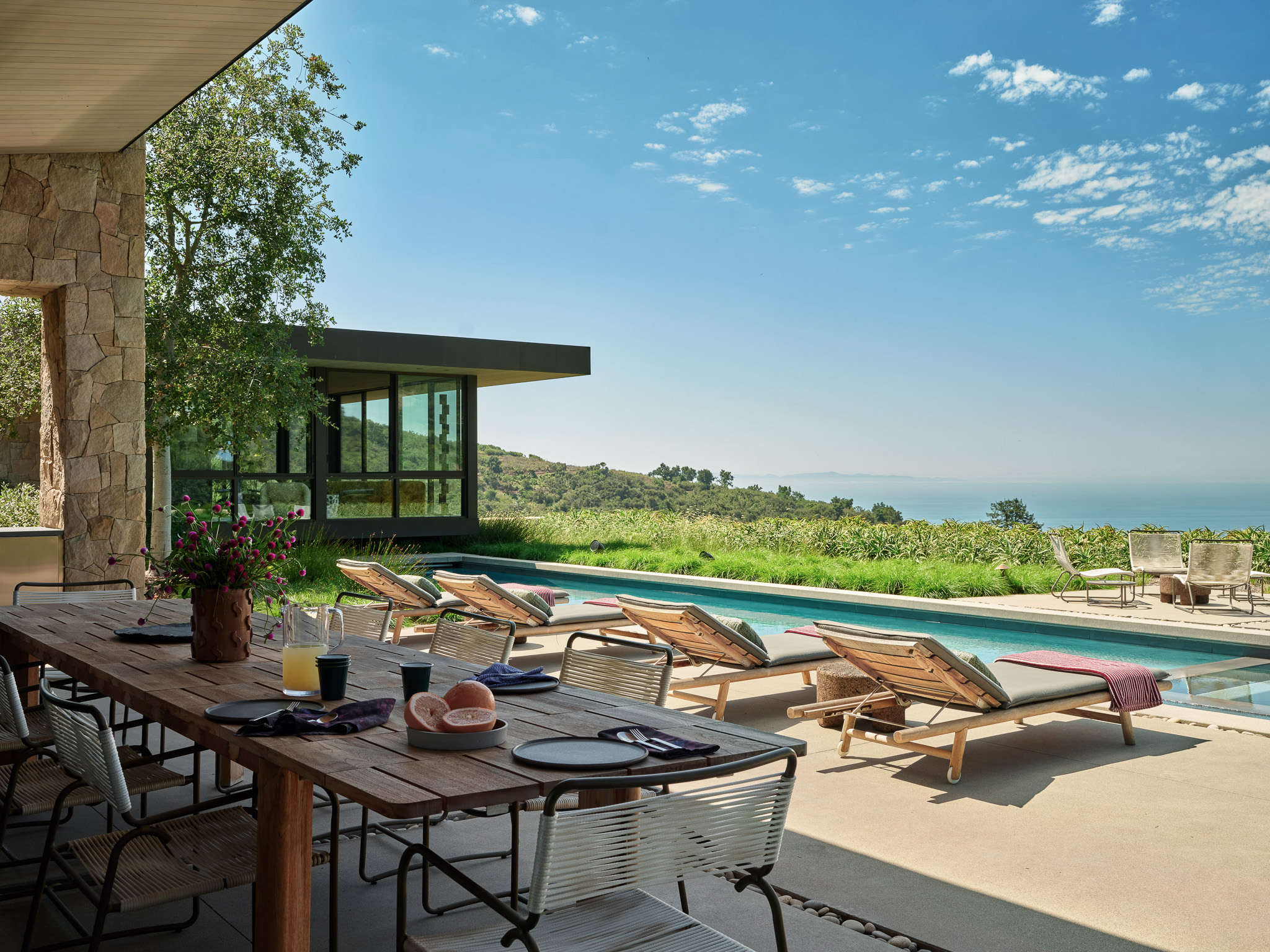 Marmol Radziner approaches landscape architecture as an essential component of the firm’s holistic practice, allowing building and site to become an expression of a singular vision. Through the firm’s in-house construction team, Marmol Radziner provides installation services, from grading and planting to irrigation and long-term maintenance, ensuring that every outdoor environment is executed with the same rigor as its design. The studio’s work explores how landscape can complement, interact with, and strengthen the architectural intent. As a living, evolving medium, landscape introduces movement, texture, and change, creating a dynamic foil to the steady presence of its partnering structures.