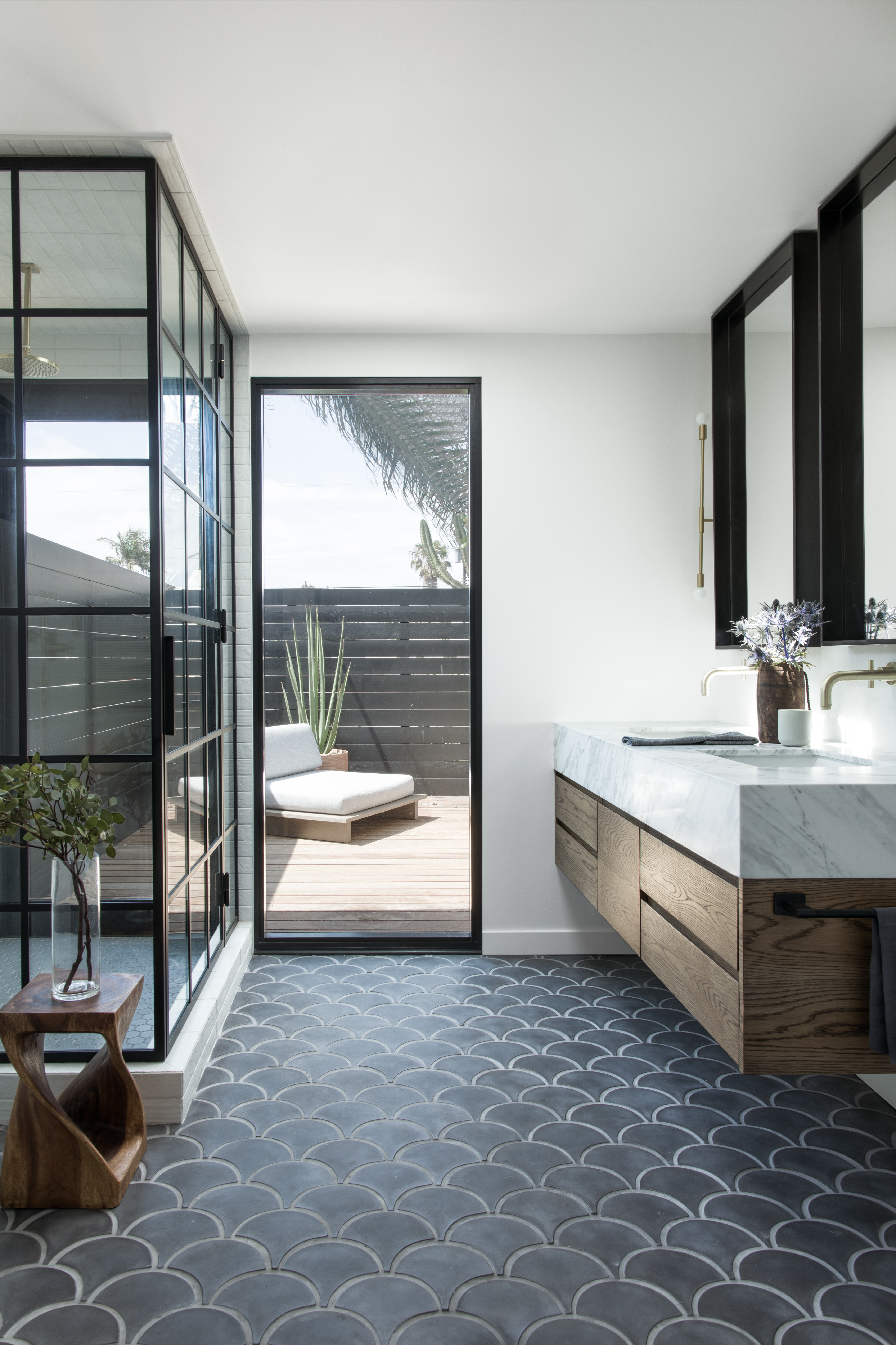 “The vision of the space was mix of an Australian modern beach house with a touch of Venice Beach vibes,” says Transition State co-founder Lauren Schneider. The homeowners, originally from Australia and Venice, are both inspired by surf culture and natural elements while being drawn to modern architecture and design, and the team took those concepts into consideration when designing their new home.