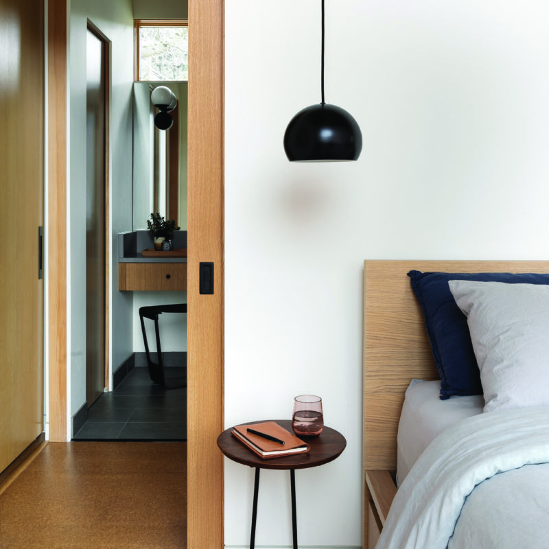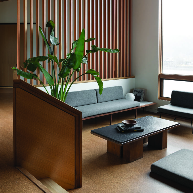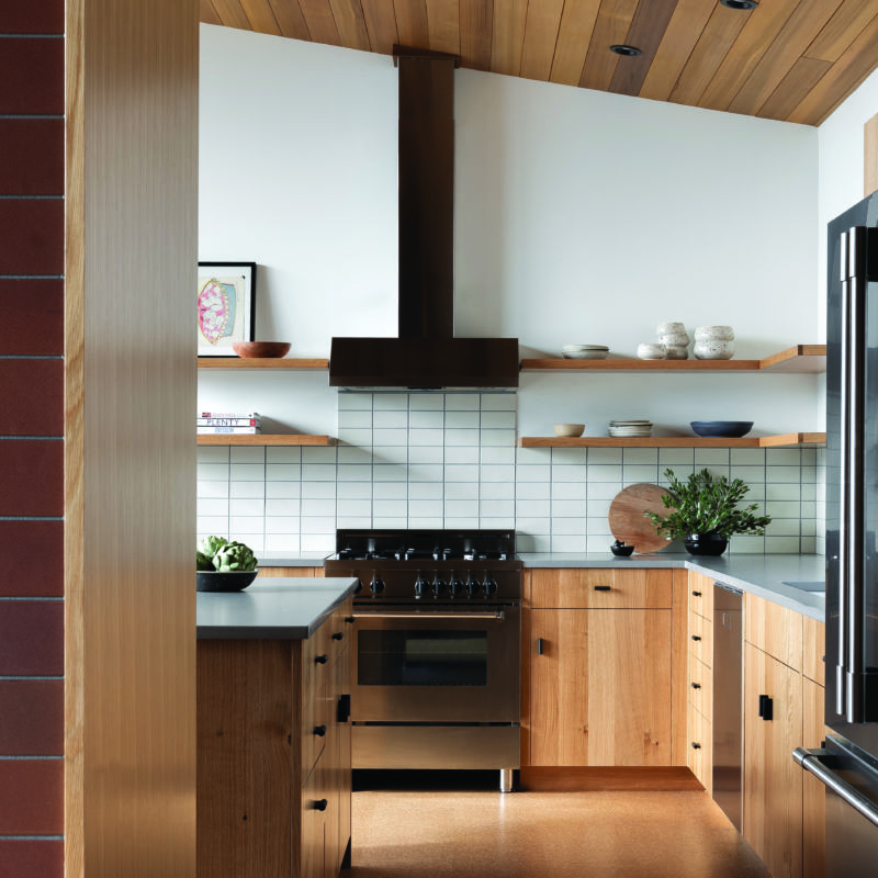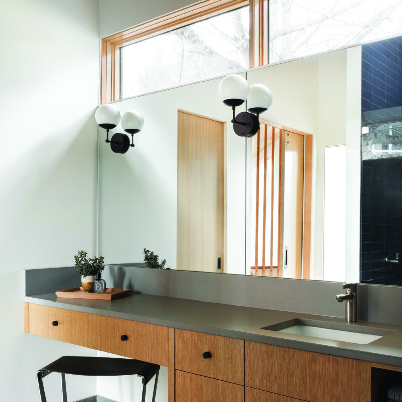 The 2,530-square-foot new build, named the Wriff Residence, was thoughtfully designed to reflect the Wrights’ work and personal aesthetics. “Our studio took a holistic approach in detailing all of the interior finishes, fixtures, lighting, and casework to ensure that this project’s interior related to its exterior,” says Jeff.