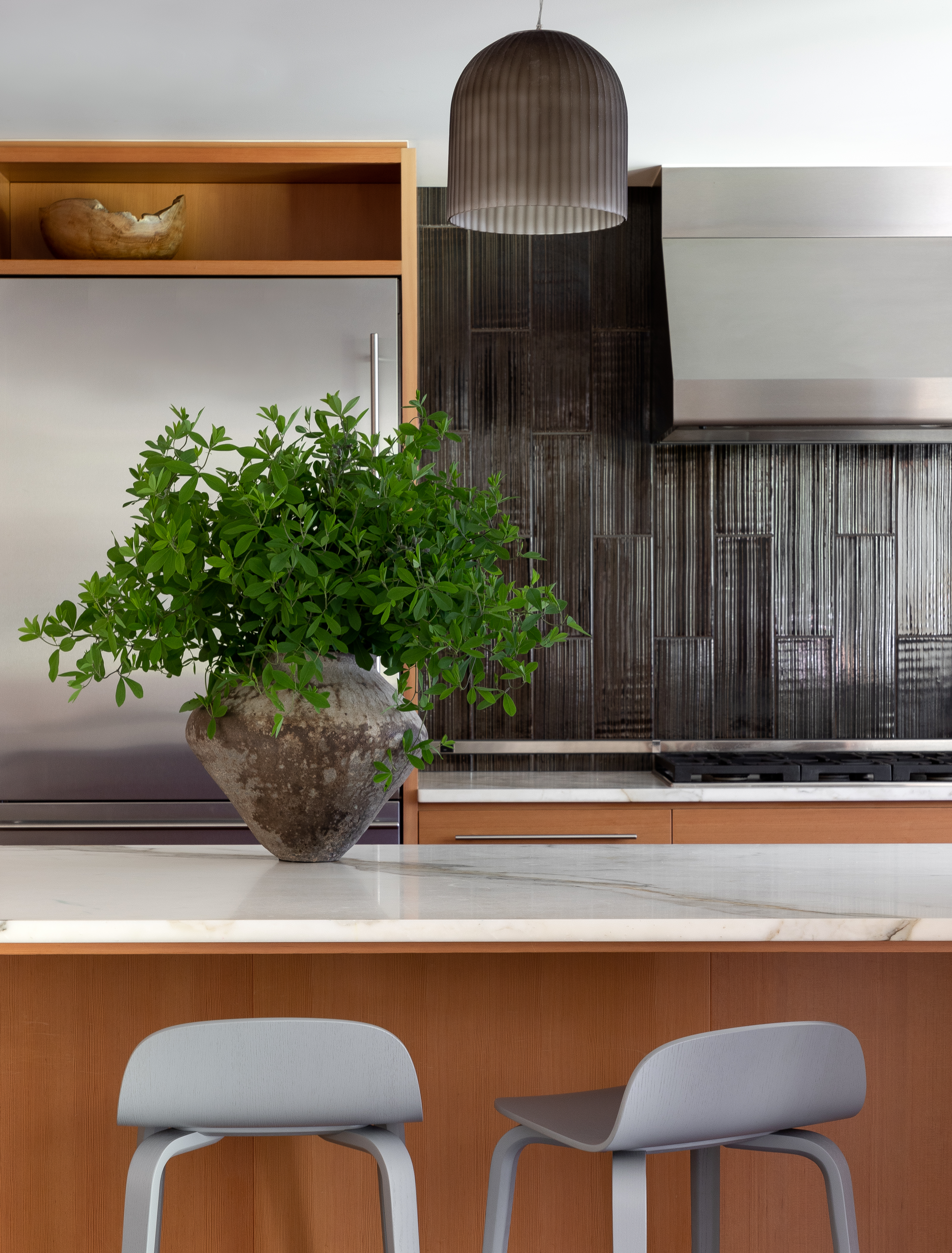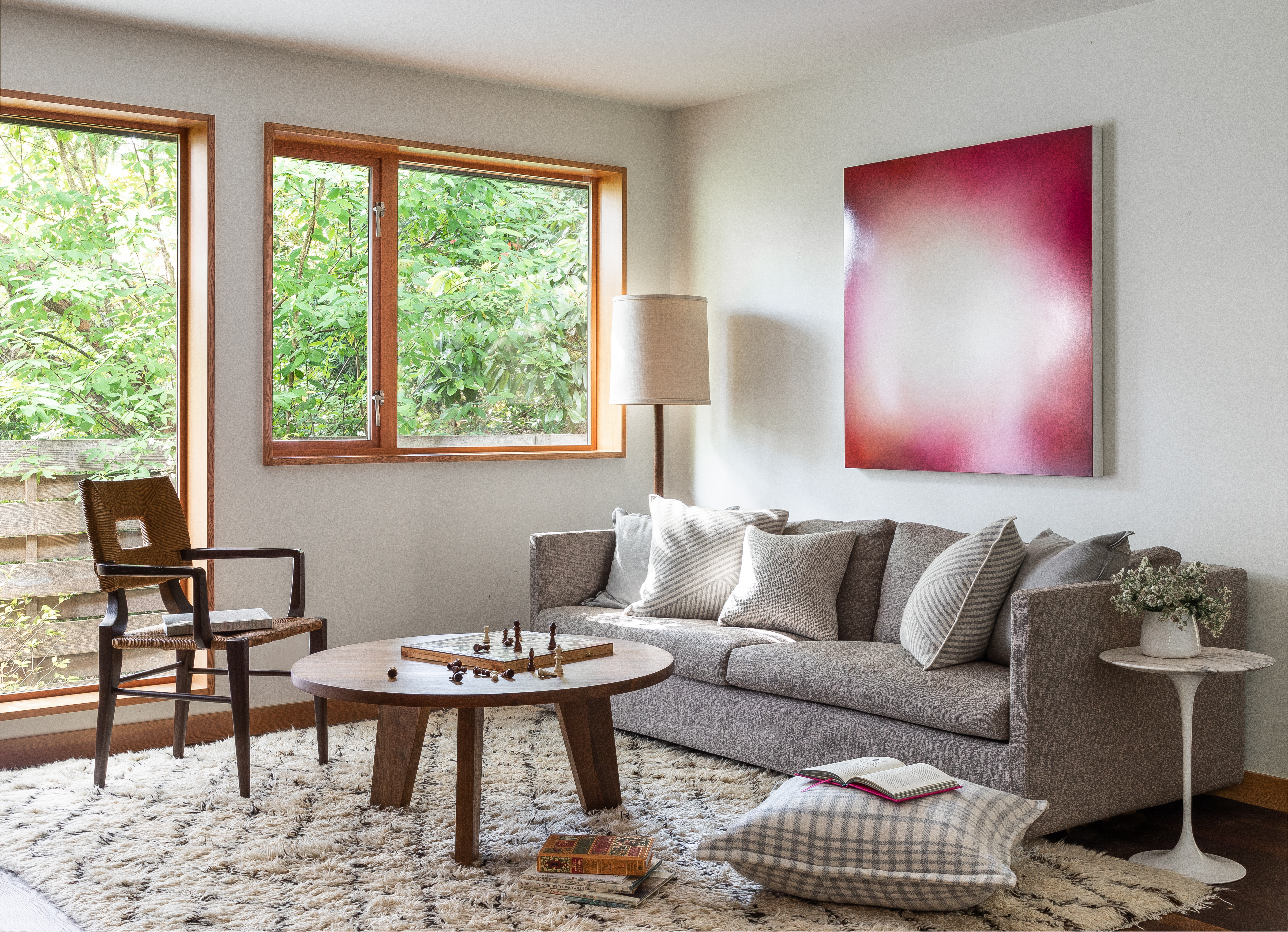 Instead, Coupard and his team focused on a gut remodel of the single-floor home, adding an additional 750 square feet. Once construction was complete, designer Andy Beers of Ore Studios was brought on board after the family realized the furniture they had wasn’t going to work in the new space. “We helped [the homeowners] define how they wanted the furnishings and decoration to feel, and then sourced pieces that supported this point of view,” says Beers.