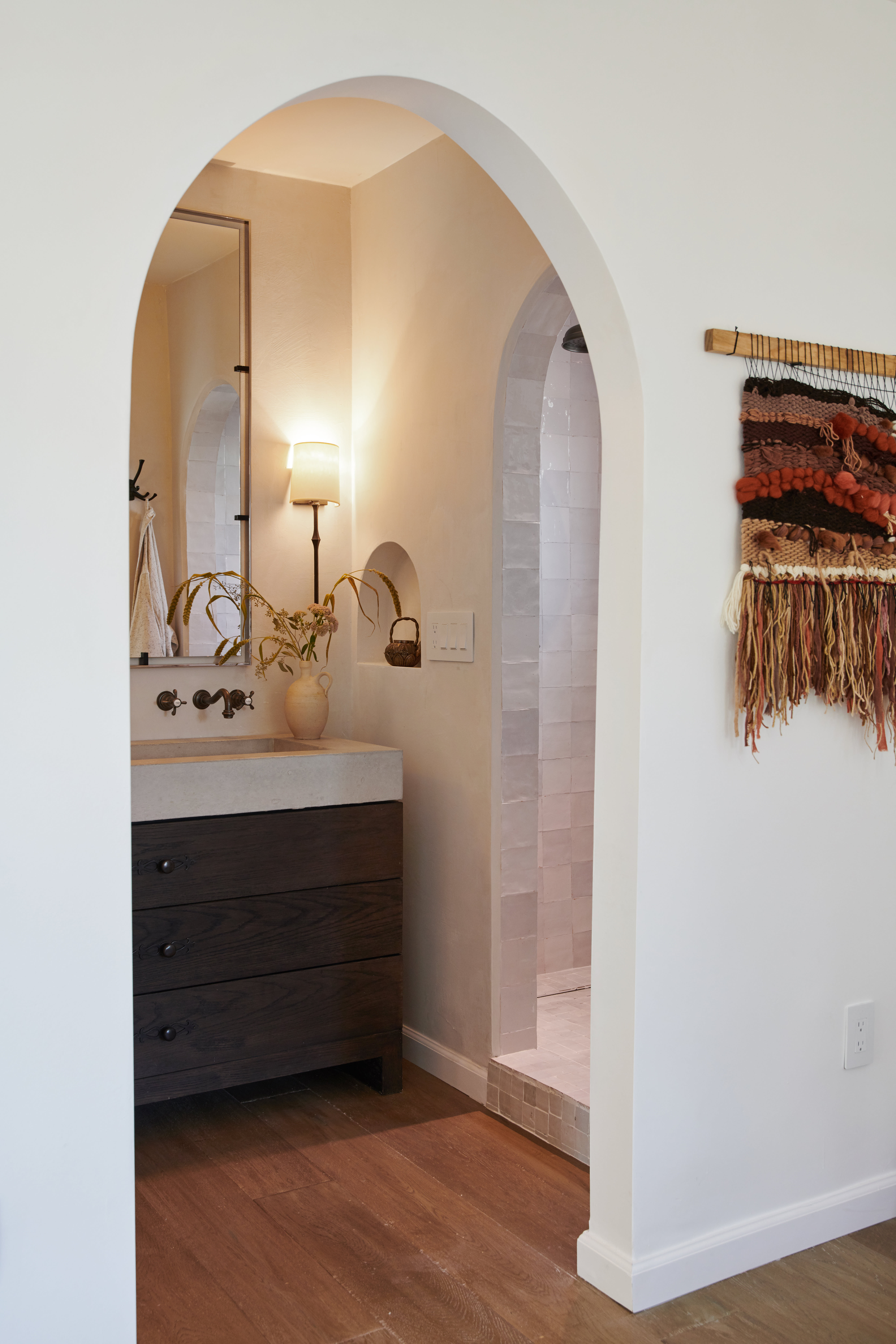 Wijaya installed Zellige Moroccan tiles in the master bath’s shower for another touch of international inspiration.