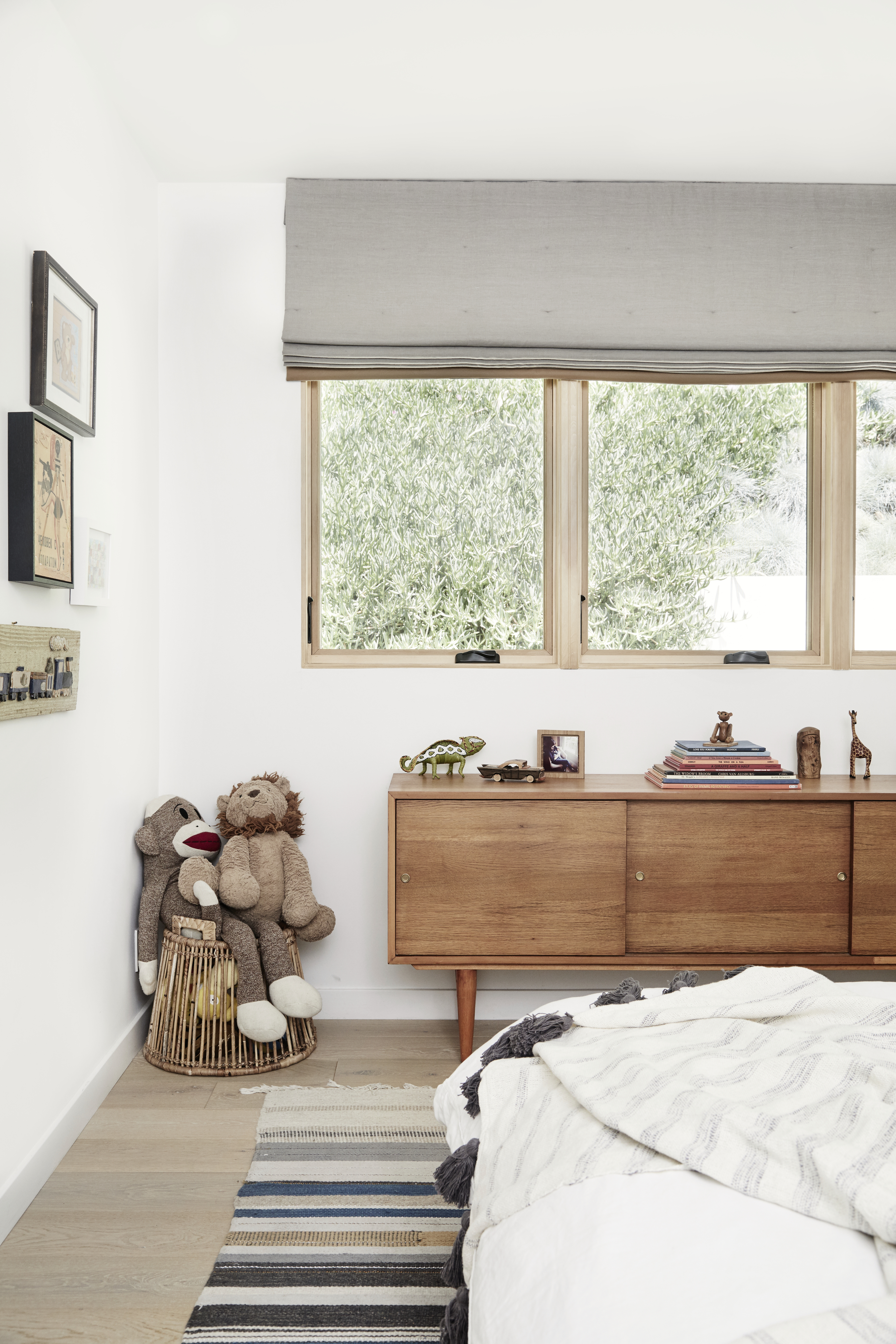 Her ultimate living room additions? “Do not underestimate the power of a well-designed sectional—it is the gathering space for all of your guests, and the jumping gym for your children. Also, gas fireplaces are magical, even in L.A.”