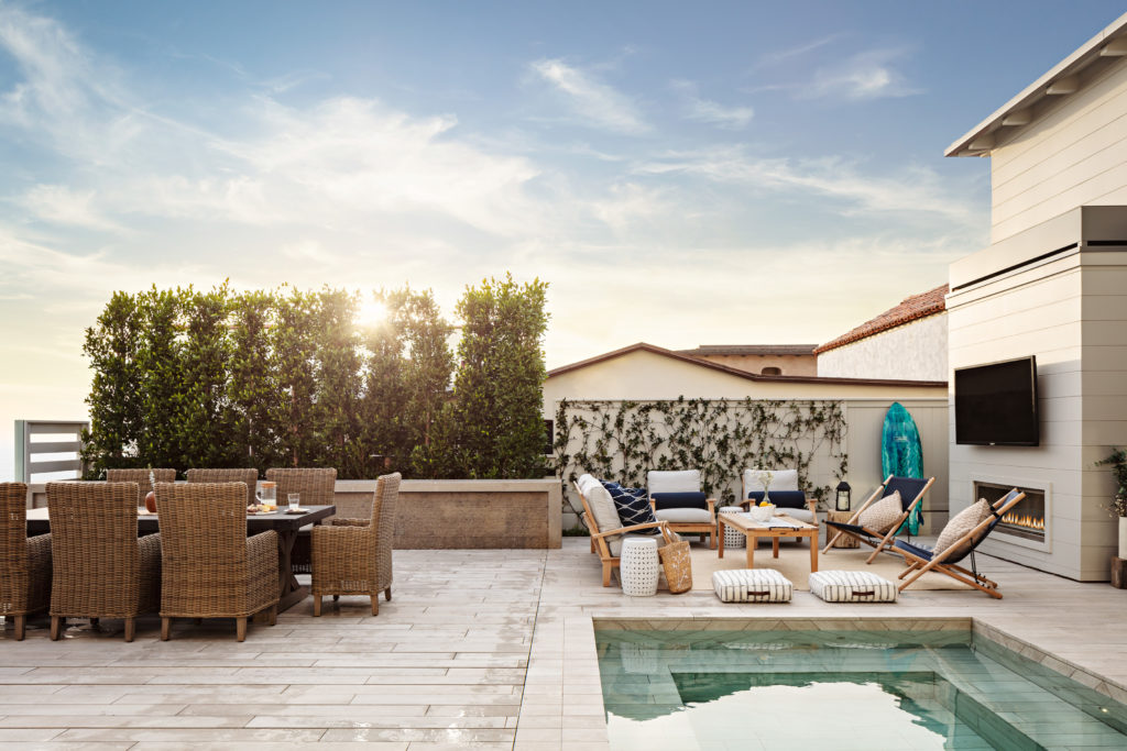 “It was the client’s idea to have a pool and outdoor entertaining space, and not compromise on either,” said Krista Laney, co-founder and designer partner of Laney LA, with her husband, Anthony. “The whole project took about two years to design and engineer.”