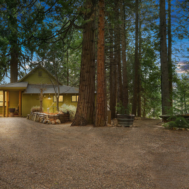Not just one cabin, but two, are for sale. This property features both a green, 1,059-square-foot A-frame cabin as the main house and a 815-square-foot red cottage as the guest cabin. Both include wood stoves, with custom walnut shelving and granite in the main house, while mosaic tile and oak slab shelves are featured in the guest cabin. Together, the two cabins sit on more than 11 acres in Mokelumne Hill, near Stanislaus National Forest.