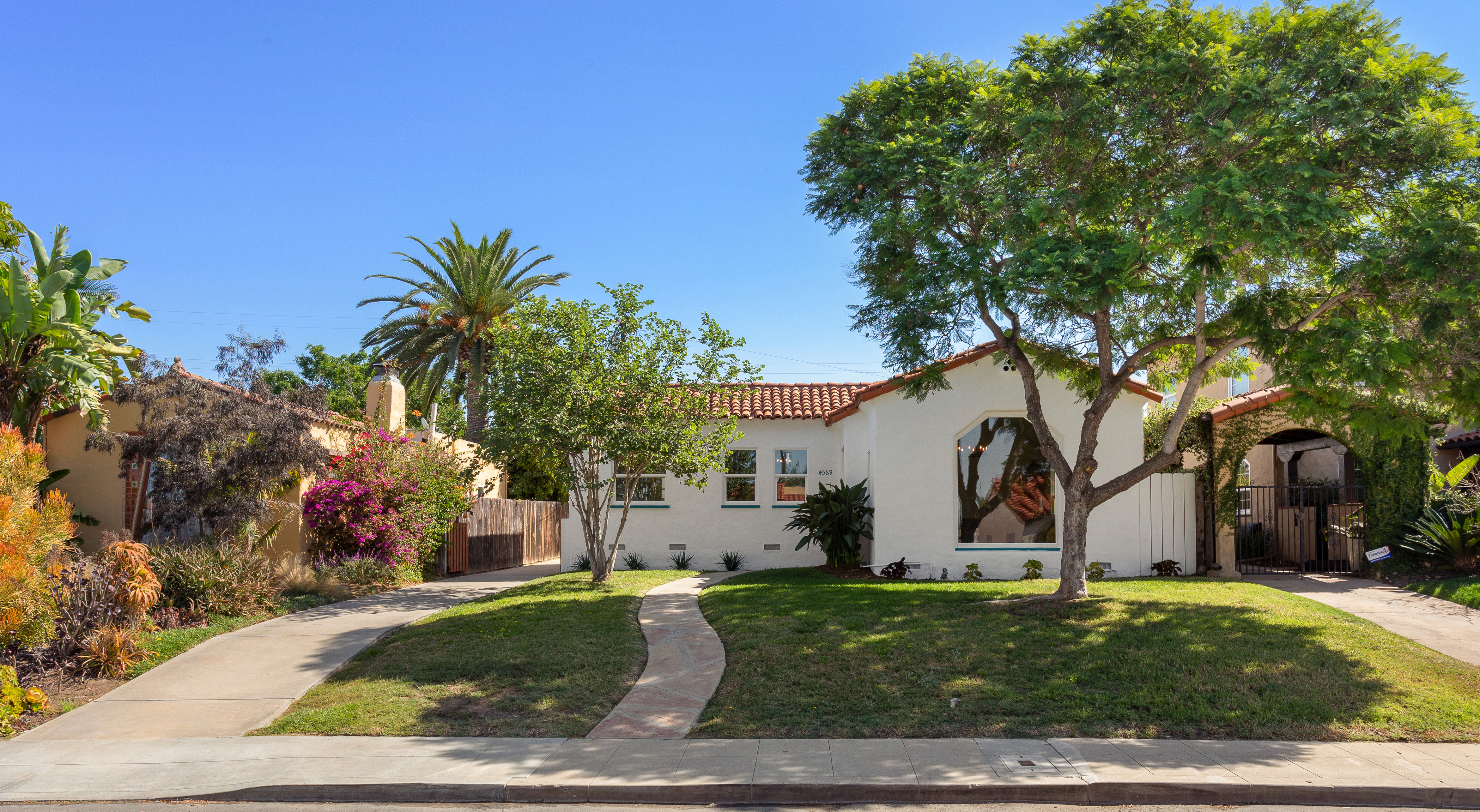 This Spanish Colonial is tucked away in San Diego’s historic El Cerrito Heights neighborhood. The home was fully renovated earlier this year, but still features beautiful charming details like the arched picture window and doorways.