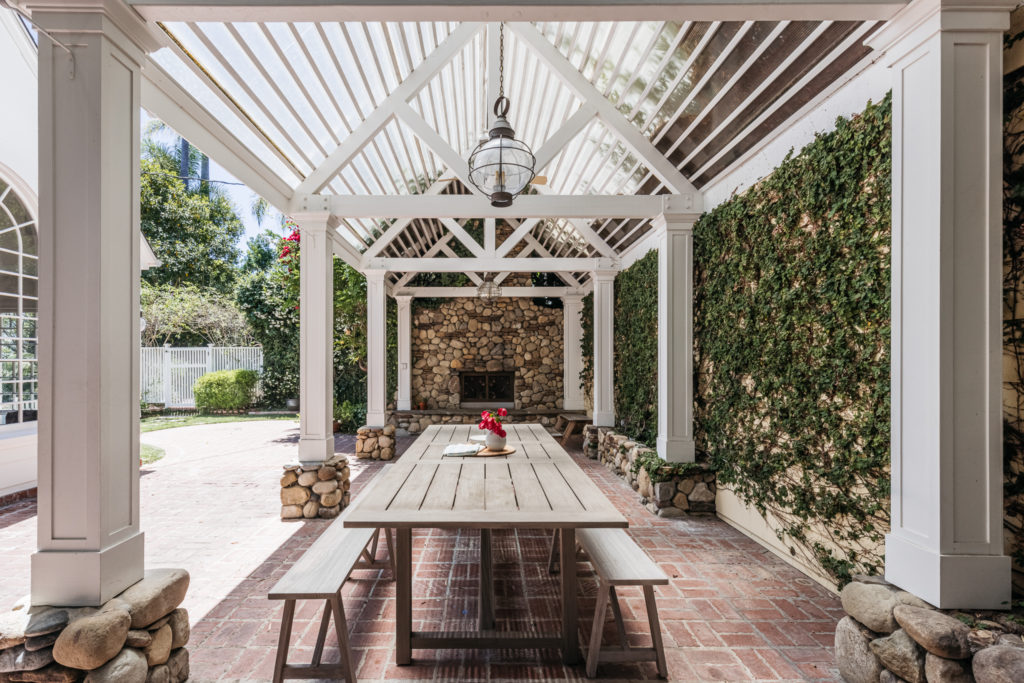 To hear the homeowner describe the decorating process, it was a collaborative effort with input from some of L.A.’s coolest design minds. Teresa Grow helped select the exterior palette, picking Farrow & Ball Tanners Brown to complement Dunn Edwards Whisper and those aforementioned Pratt & Lambert Venetian Gold shutters. Grow calls it an “endless summer house” vibe that fit the home’s “timeless, breezy confidence.” Architect Emily Farnham chimed in with a few useful nuggets of wisdom.