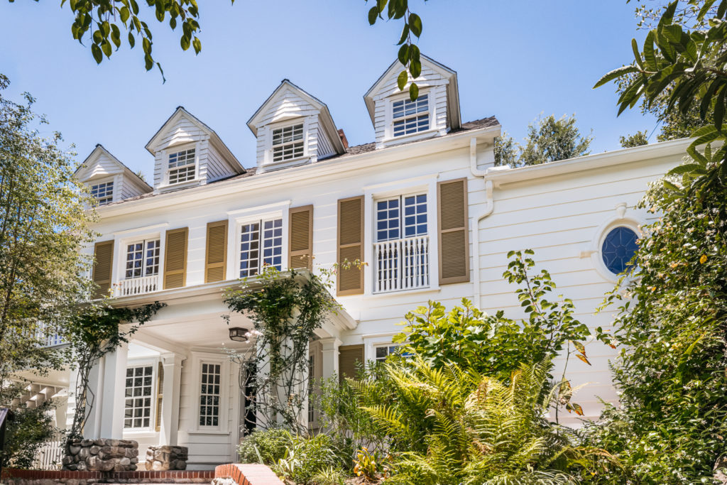 Don’t underestimate the power of a well-painted shutter. One peek at the mustard-gold shade against the white clapboard on this 1920s Colonial, perched on a hill near Griffith Park in Los Angeles, and you know it’s not your typical fussy traditional. Step inside the chocolate brown front door, and you’ll find a house that’s calm but also happy; chic but family-friendly; grown-up but filled with cozy upholstery that’s as soft and inviting as ice cream.