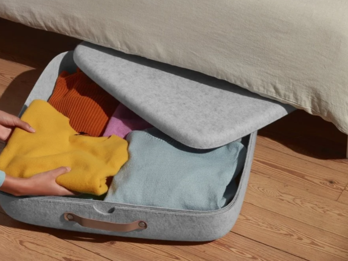 We all have those jeans we tell ourselves will fit again someday or an old prom dress hanging in the back of the closet—it’s time to pack those up. If you haven’t worn something in over a year, it might be time for the donation box. It will make it easier to move onto seasonal items like coats and ski gear that might be taking up a lot of space. Put them away in your coat closet if you have one. Underbed storage bins are also a great call if you’re tight on space.