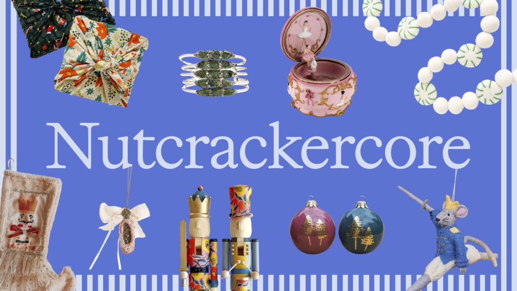Nutcrackercore combines the classic holiday ballet with whimsical, fairytale elements. It’s an ode to a night at the ballet with Clara and the Sugar Plum Fairy. The trend edit reports that ballet music box sales have risen 1000% in the past year. Incorporate the aesthetic into your space with a ballet music box of your own, velvet bows and ribbons, or anything that magically brings your space to life—just like the Nutcracker in the ballet story.
