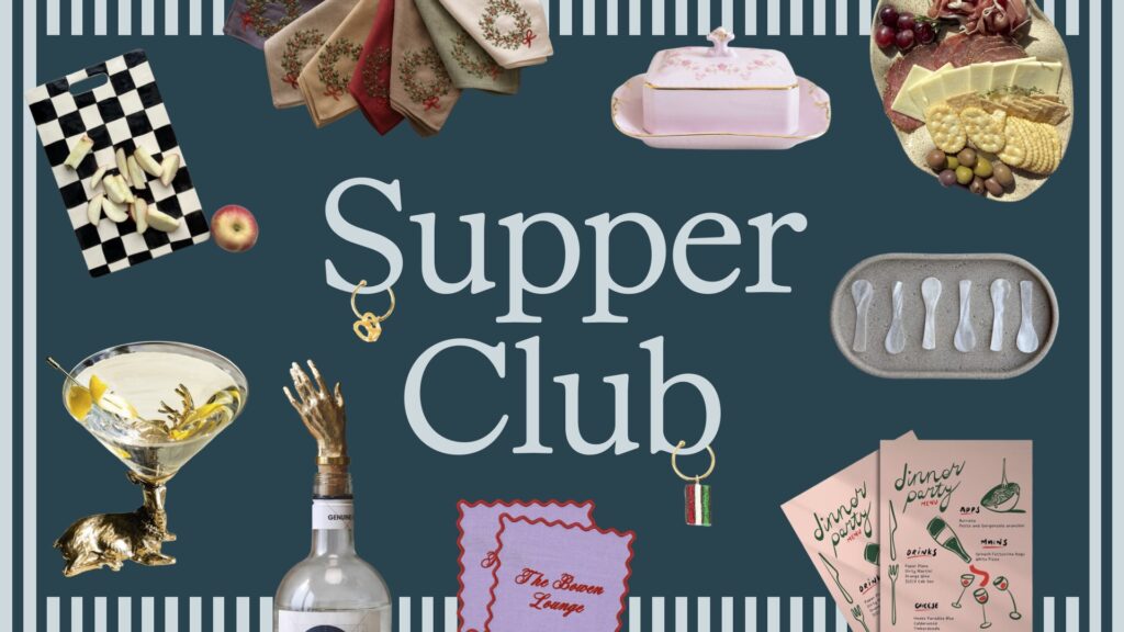 Nonna Holiday is all about things you’d find at your grandmother’s house: family recipes, coziness, and vintage kitchen items. It’s as if you turned a warm hug and home-cooked meal into an aesthetic. Think homemade pasta and bread, tomato motifs, quilted details, vintage silverware, and keepsake items with a nostalgic, personalized touch (whether that be an engraving, embroidery, or a handwritten recipe). The trend edit spotlights GiftShopByKORISSA’s custom bread baskets, perfectly fitting for the Nonna Holiday emphasis on warmth and tradition.