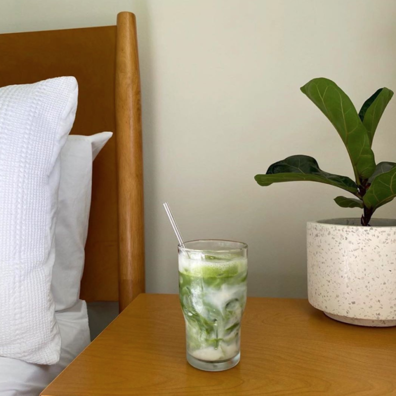 Nena Farrell: Matcha lattes for me! I have two super easy recipes: For a toasty pick-me-up, I mix about two teaspoons of Golde’s Pure Matcha (my current favorite) and some of my favorite almond milk—New Barn’s sweetened barista milk has amazing foam and flavor—in my milk frother for an easy instant latte. On a hot day, I’ll make an iced matcha latte—first mix the two teaspoons of matcha with about a tablespoon of hot water (add a little bit at a time while mixing) and mix thoroughly in a flat bowl or cup by making the letters M and Z over and over with a bamboo matcha whisk. Then, once the matcha is well blended, pour over ice with your favorite milk.