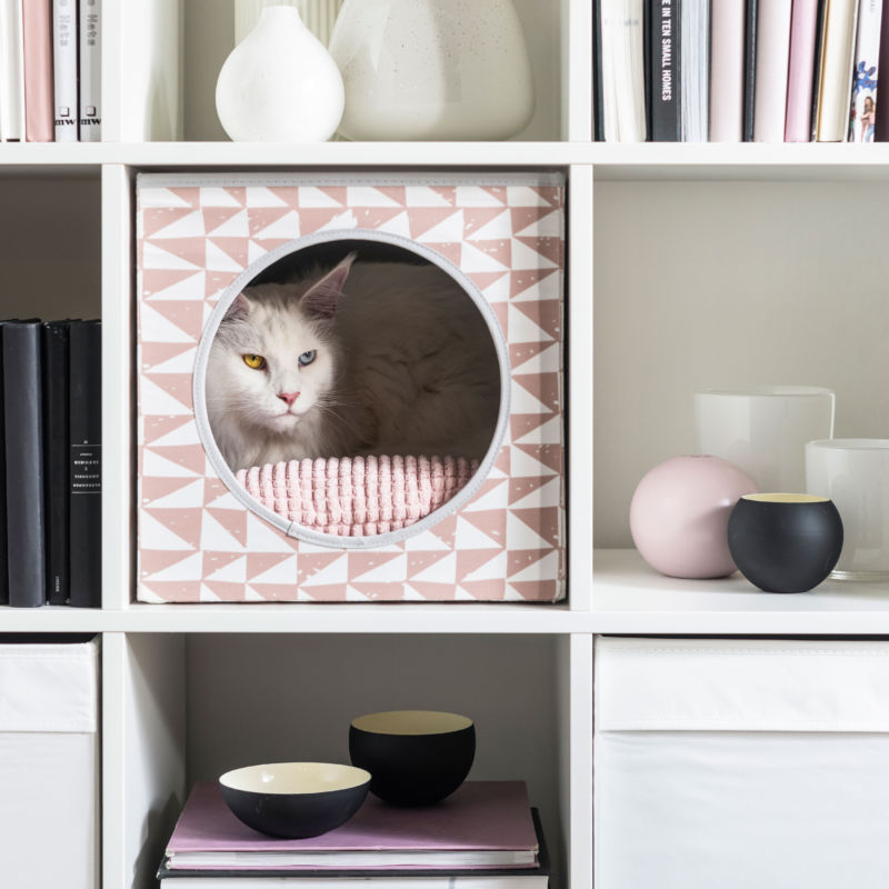 This cozy and uber-affordable cat hideaway comes in a variety of colors and patterns so there’s sure to be one that matches your furniture. And if you already happen to have a Kallax shelving system, that’s truly a match made in design heaven, because the cat house is made to fit perfectly in that unit’s cubbies. (Also, if you want to purchase this for a small dog, we won’t tell.)
