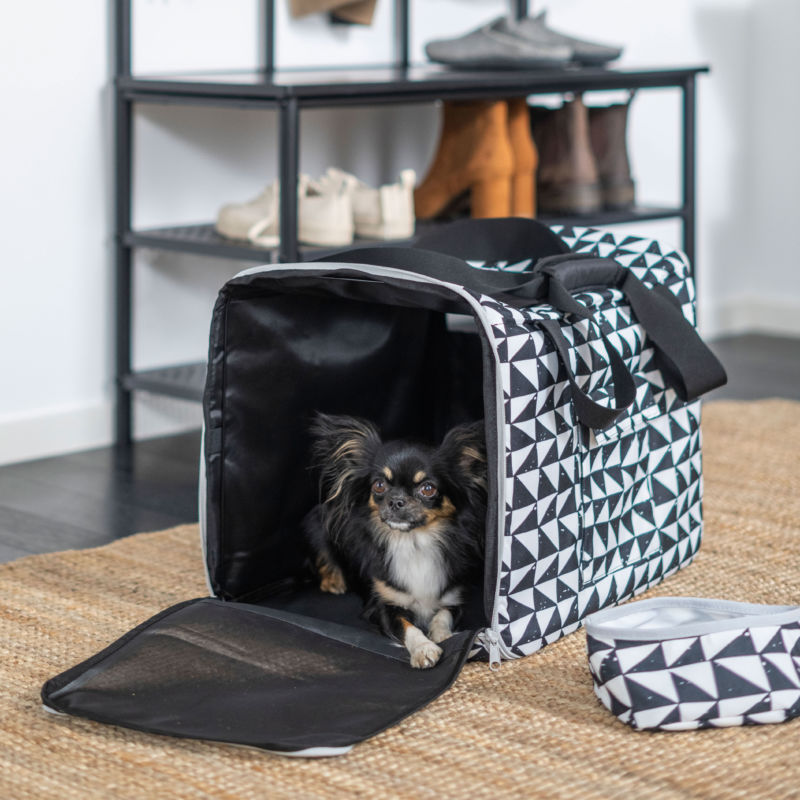 Not all pets like to travel, but a fun, stylish (not to mention affordable) soft-sided pet carrier makes it easier on everyone. A matching food/water bowl ($1.99) makes the setup more comfortable for your furry friend and more visually appealing for you.