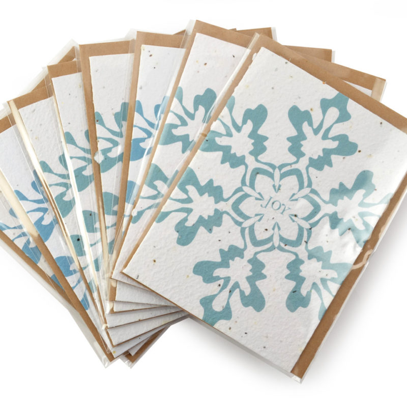 If you love wrapping paper, try the recycled route. Stock up on 100% recycled papers by British Columbia’s Banquet Atelier & Workshop—these whimsical prints won’t feel stale come January.