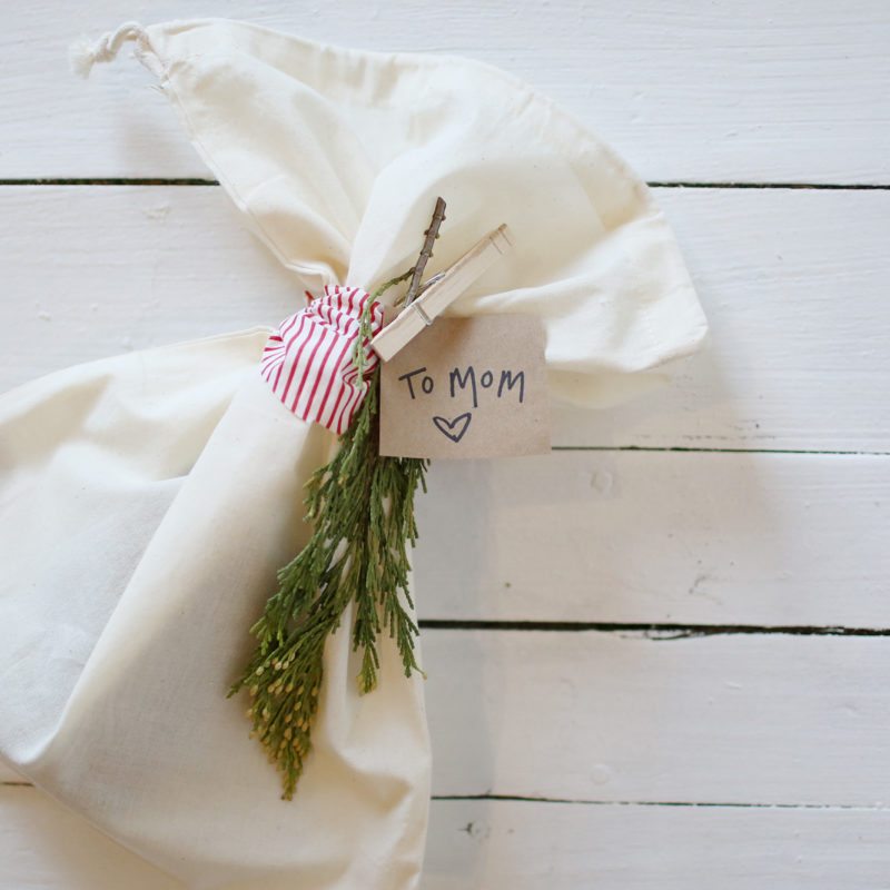 Give two gifts in one by wrapping a gift in a reusable produce bag, like in this DIY from Trash Is for Tossers, so your giftee can start cutting down on plastic and waste at the grocery store, too.
