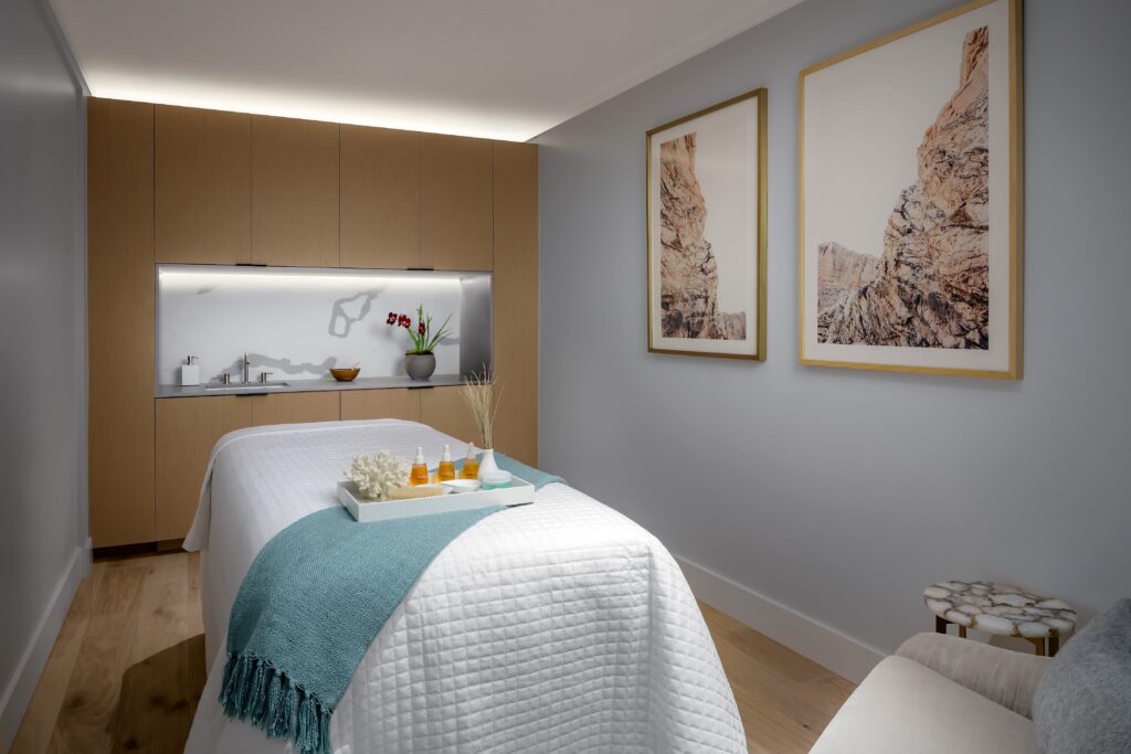 Superlatives abound here: Set on 400 acres of coastal canyon minutes from the Pacific, the spa features innovations like Zestós DryFloat, zero-gravity Welnamis loungers, and vibro-acoustic therapy. The 21,000-square-foot facility includes 12 treatment rooms; men’s and women’s lounges with stone fireplaces; saunas, steam rooms, and indoor whirlpools; a shared fitness center; plus an outdoor relaxation area with a whirlpool and pool. It’s an expansive, high-touch environment designed to cocoon guests before and after treatments.