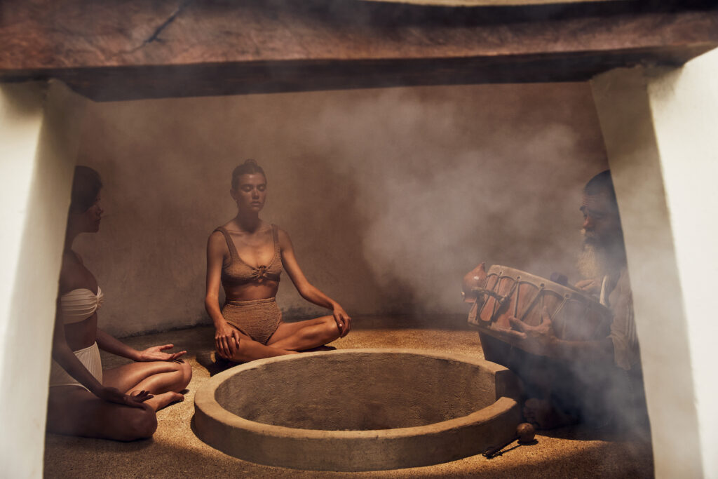 Naviva is an adults-only sanctuary situated on 48 acres of pristine coastline in Nayarit where guests can engage with the local culture in many ways, including a transformative temazcal ritual that combines physical cleansing with spiritual healing. The property works with local native practitioners to facilitate a grounding meditation before entering the adobe dome where participants sit in a circle around hot coals ritualistically steamed and stoked with copal while the practitioner leads prayers and intentions of ancestral healing and gratitude through prayer and song.