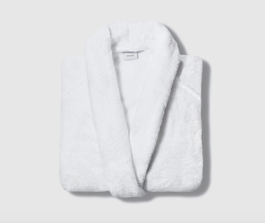 Snowe’s classic, hotel-style robe is made from fast-drying, air-woven terry cotton for a fit that’s lightweight and soft. The unisex sizing makes for a roomy fit, but the elegant design keeps it from being a frumpy fit.
